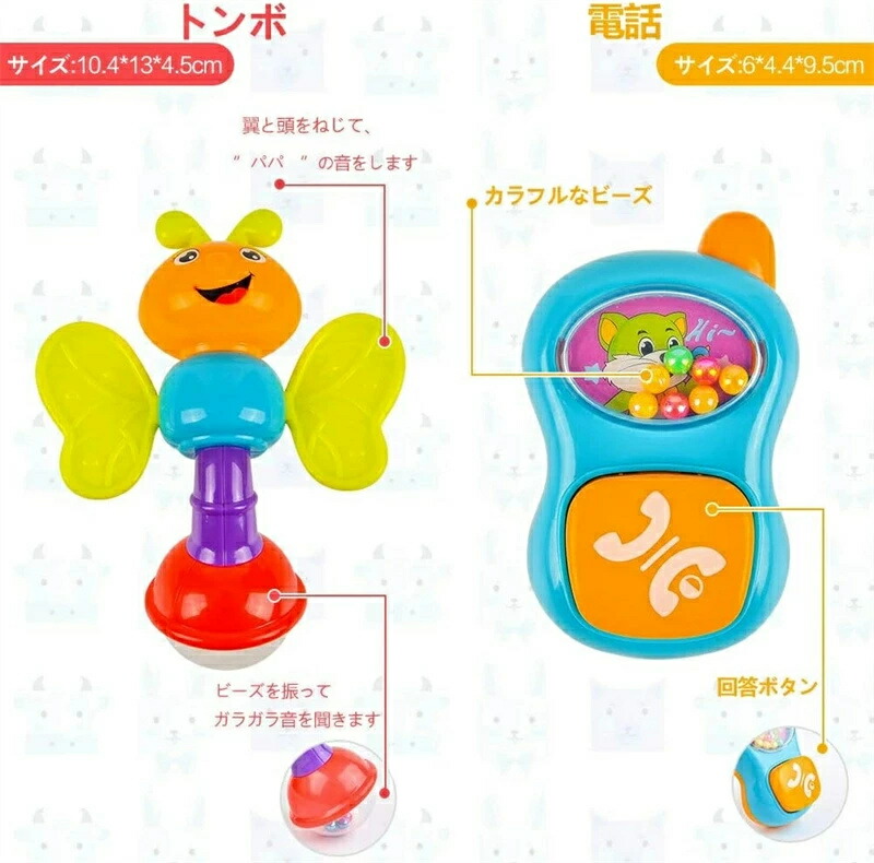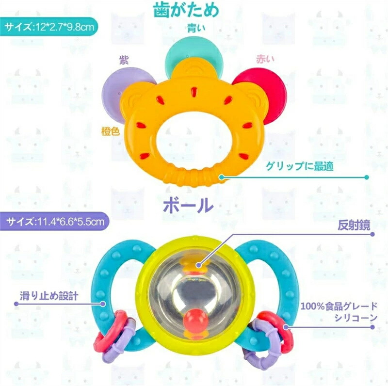 【人気のおもちゃセット】: このがらがらおもちゃは振ると音が出て、優れた素材を使ったがらがらラトルです。赤ちゃんの教育玩具として使用できます。赤ちゃんの聴覚と視覚の発育を刺激することができ、赤ちゃんのさまざまな能力も鍛えられます。