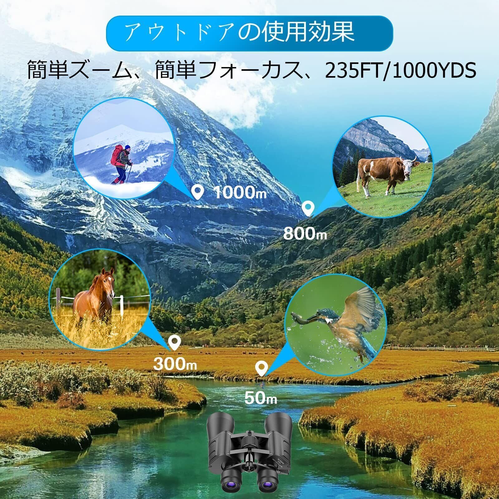 【高倍率10倍-30倍】弊社の双眼鏡は、ズーム倍率10倍、14倍、18倍、22倍、26倍、30倍を選択できます。ライブ、コンサート 、観劇、オペラグラス、星雲、スポーツ観戦、野球、アウトドア、登山、月、夜空、星空、旅行など楽しみ方に最適です。双眼鏡で遠い対象物まで生き生きとしていて目の前に見るようです。双眼鏡の選択に迷った初心者にもオススメです。軽い重量(800g)とコンパクトな形で、235ft/1000ydsの高精細・大視野を実現。長時間でも片手で持ち運ぶのは疲れにくいです。どこまでも使用できて、適応範囲も広いです。着脱式のネックストラップも付属し、落とす心配から解放できます。