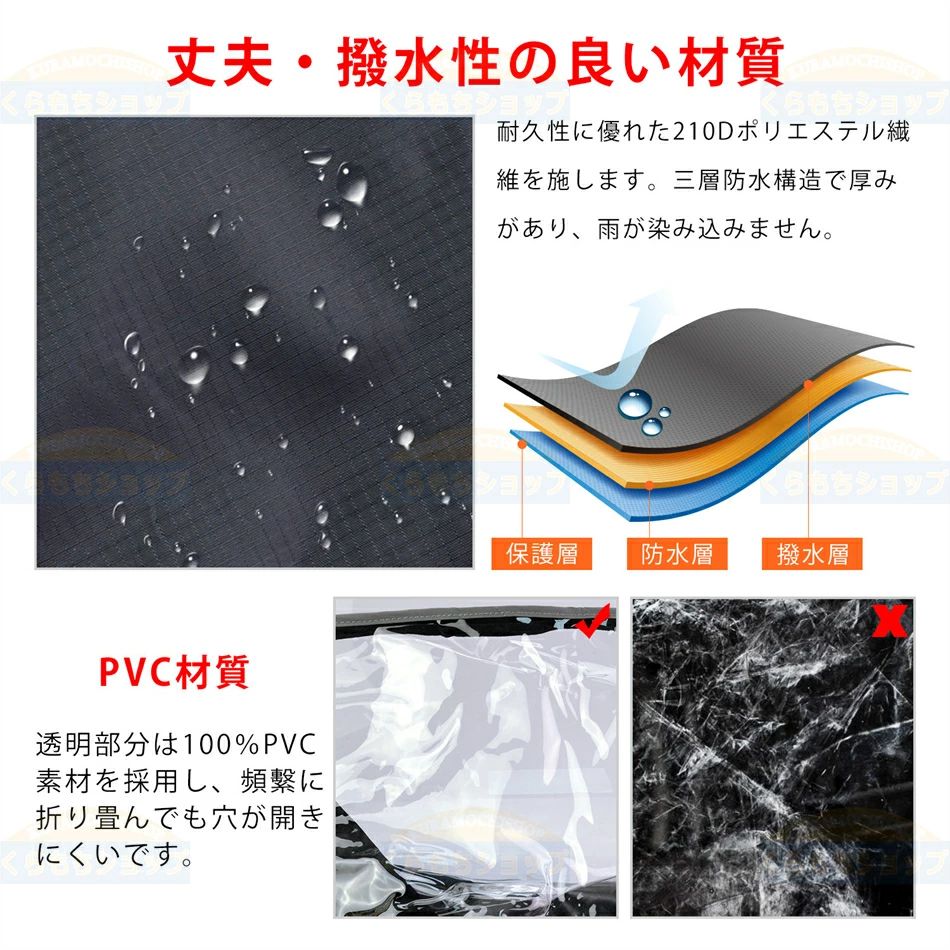 【防水】自転車用レインコートは透明PVCと210 Dポリエステル生地で作られ、耐久性と防水性があり、長期使用可能
