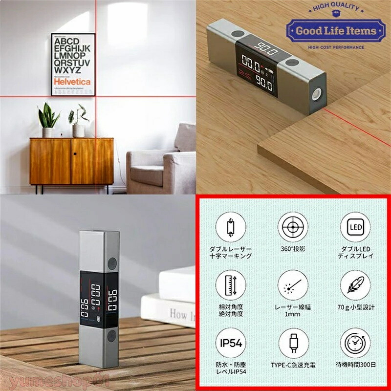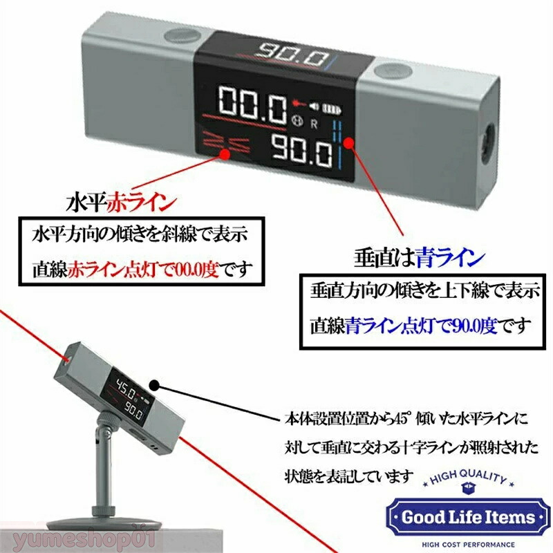 水平器 レーザー水平器 水準器 角度計 本体のみ 本体+スタンド