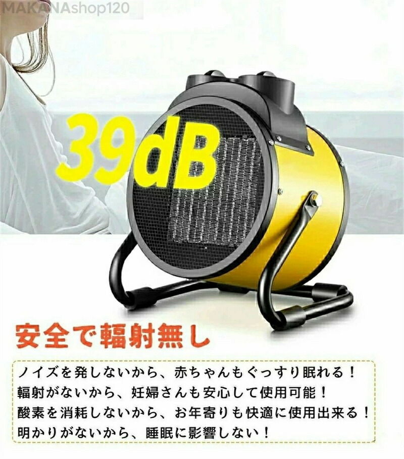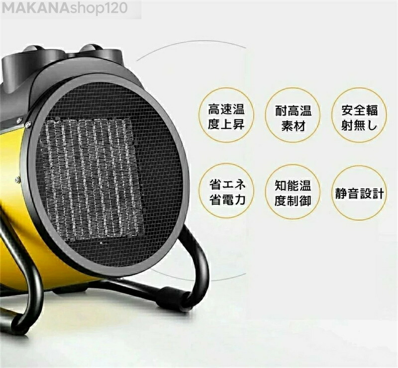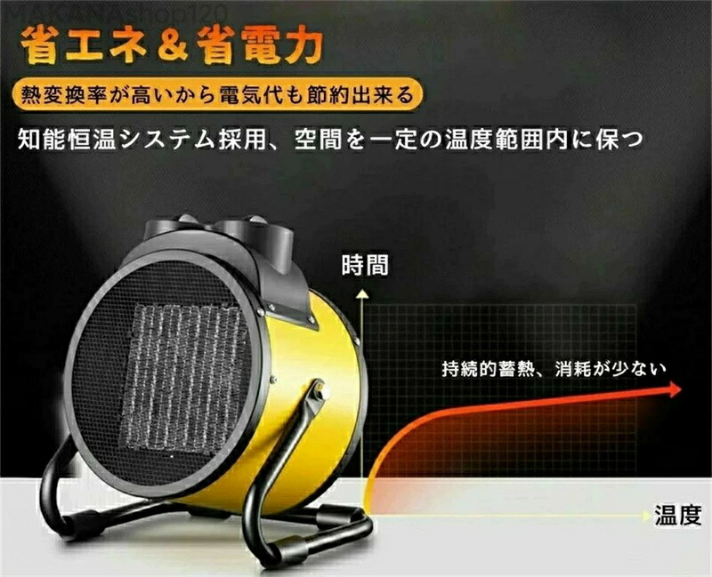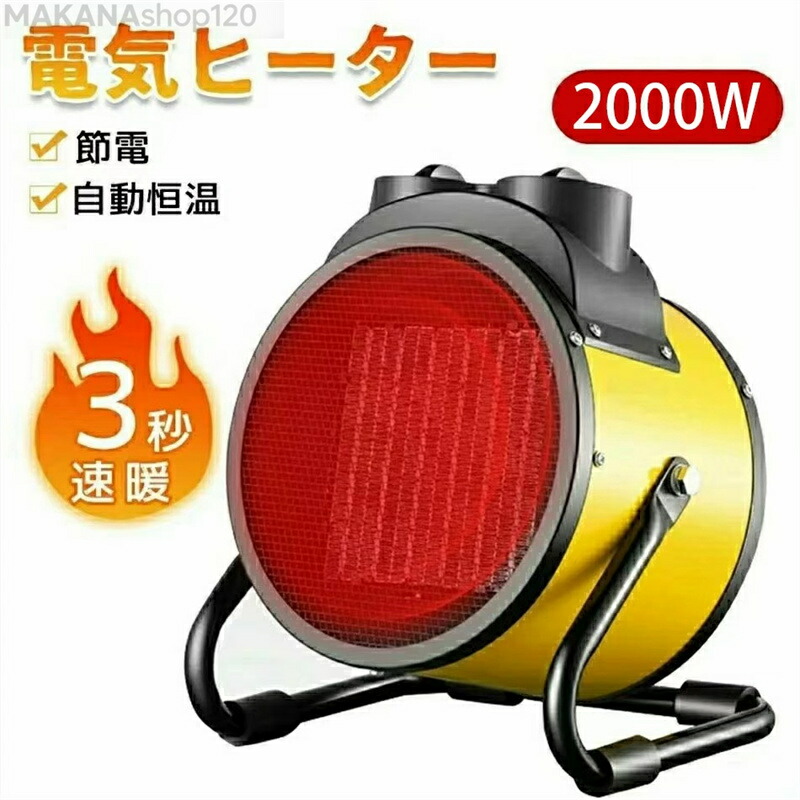 速暖 2000W ヒーター 小型 ハイ イエロー レッド