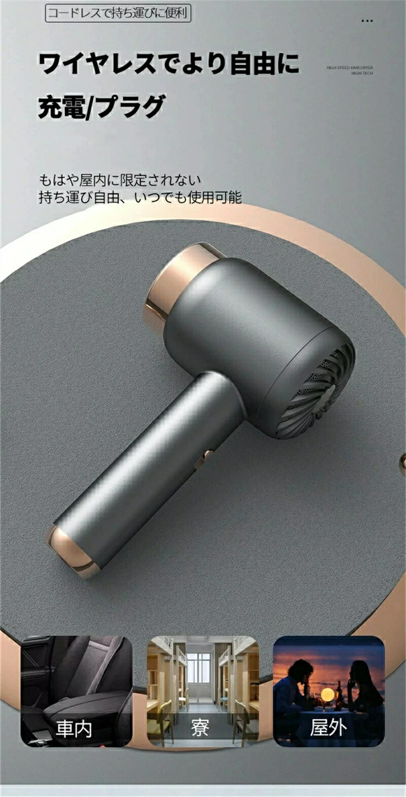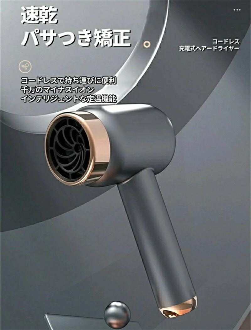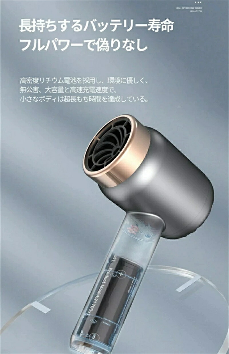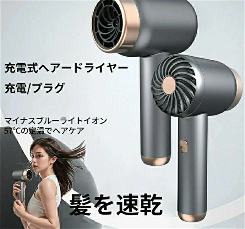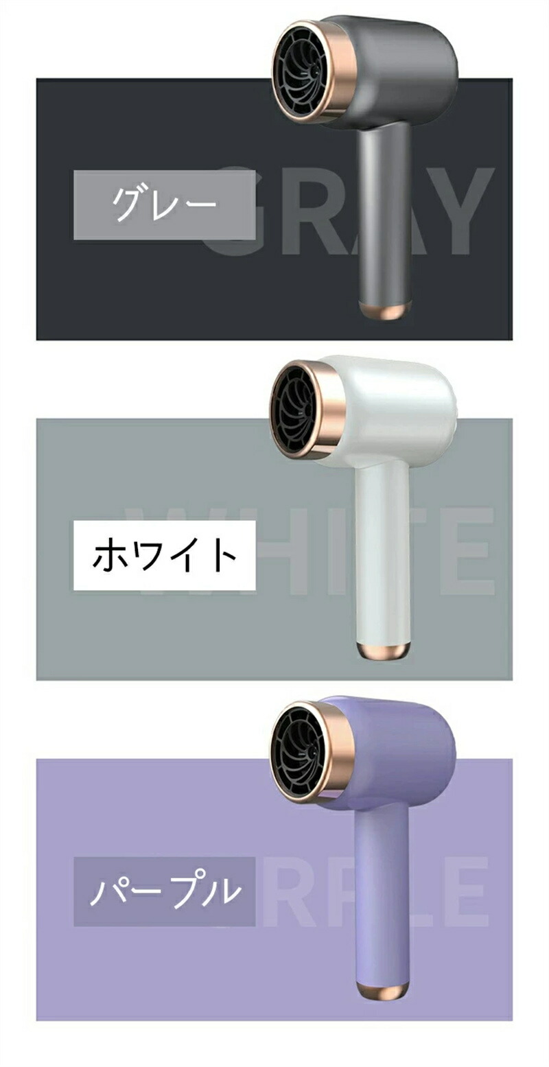 コードレス速乾充電式ヘアードライヤーコ グレー パープル ホワイト