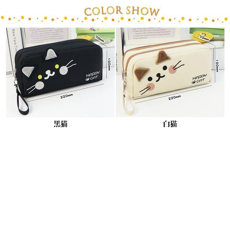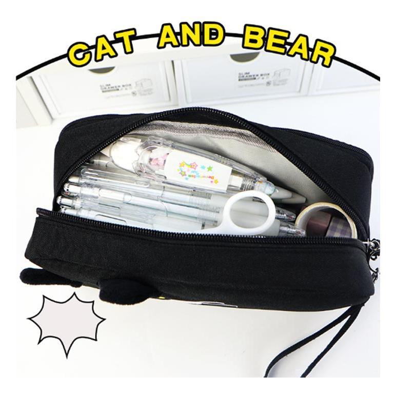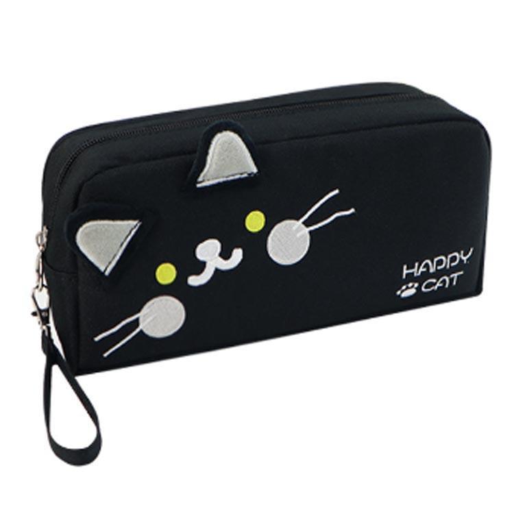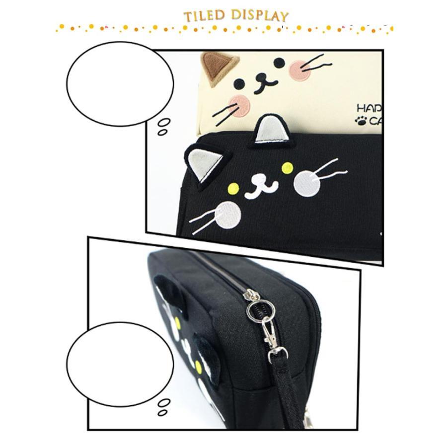 コンパクト ネコ柄 女の子 ポーチ 筆 文房具 事務用品 筆記具 ペンケース 人気 黒猫 白猫