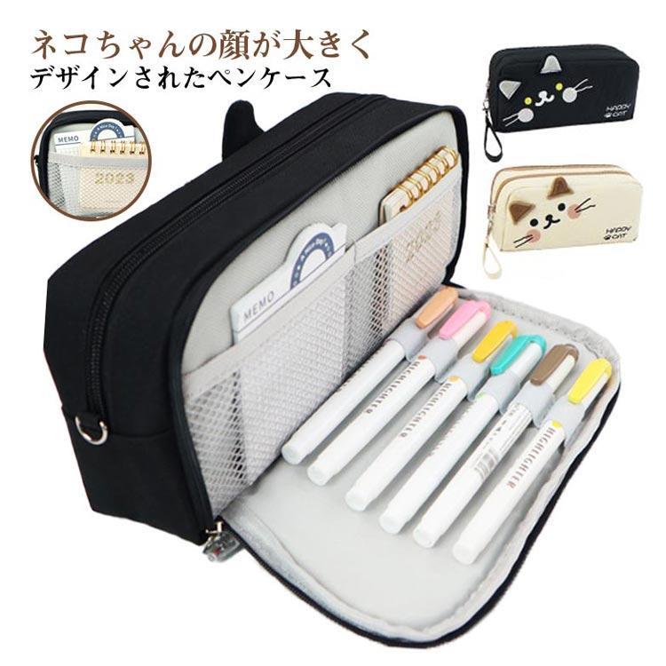 コンパクト ネコ柄 女の子 ポーチ 筆箱 ペンケース 大容量 ファスナータイプ ふでばこ 猫柄 可愛い 筆記用具 男の子 筆入れ ペ 小物入れ