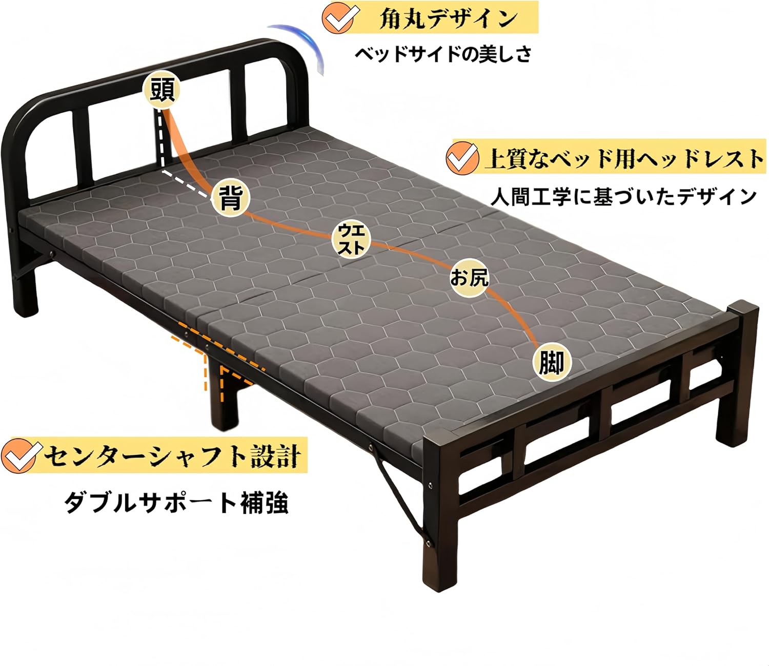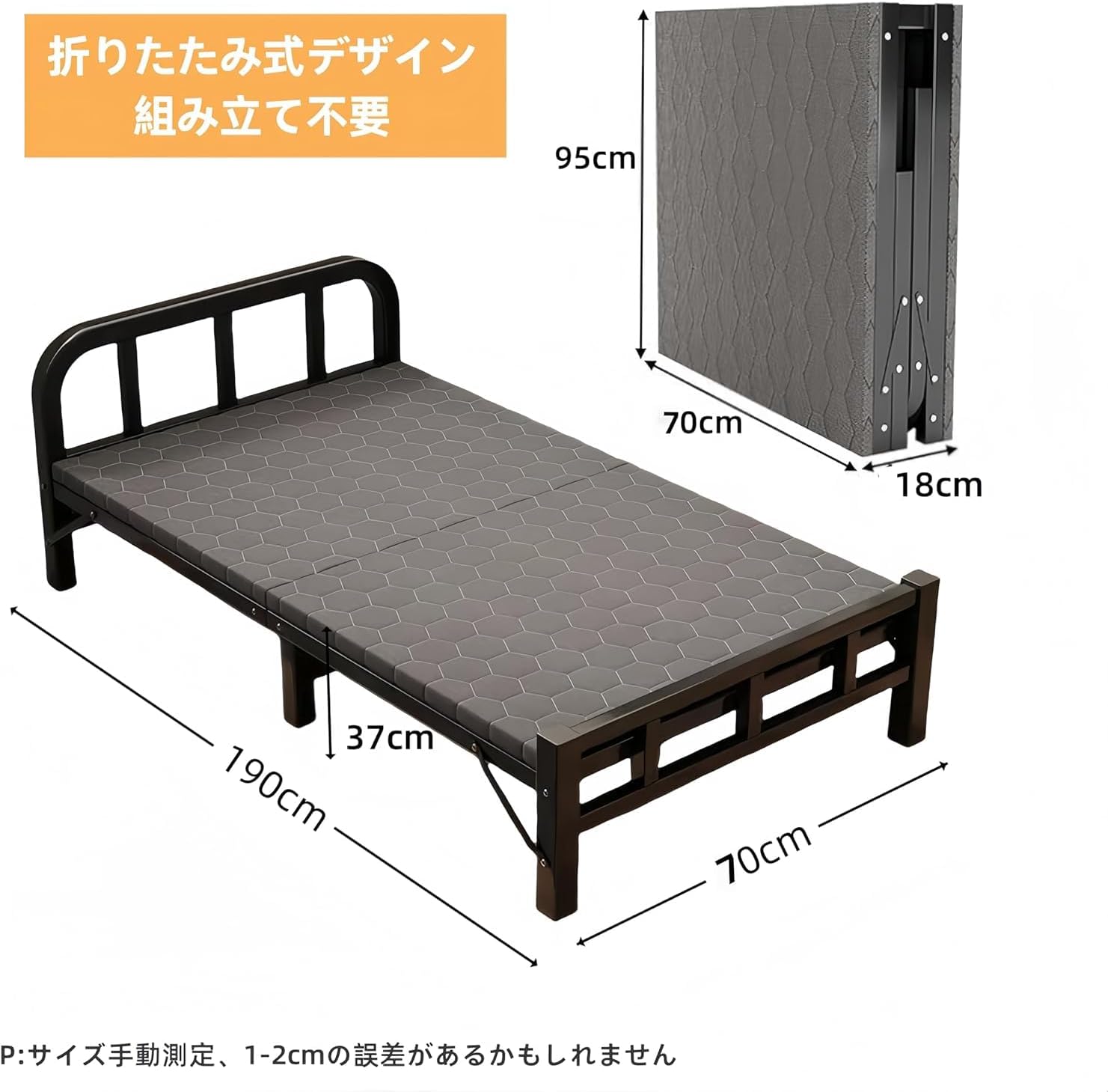 折り畳みベッド シングル 簡易ベッド 白 ブラック 190cm長さ×70cm幅×37.3cm高さ 190cm長さ×80cm幅×37.3cm高さ 190cm長さ×90cm幅×37.3cm高さ 190cm長さ×120cm幅×37.3cm高さ
