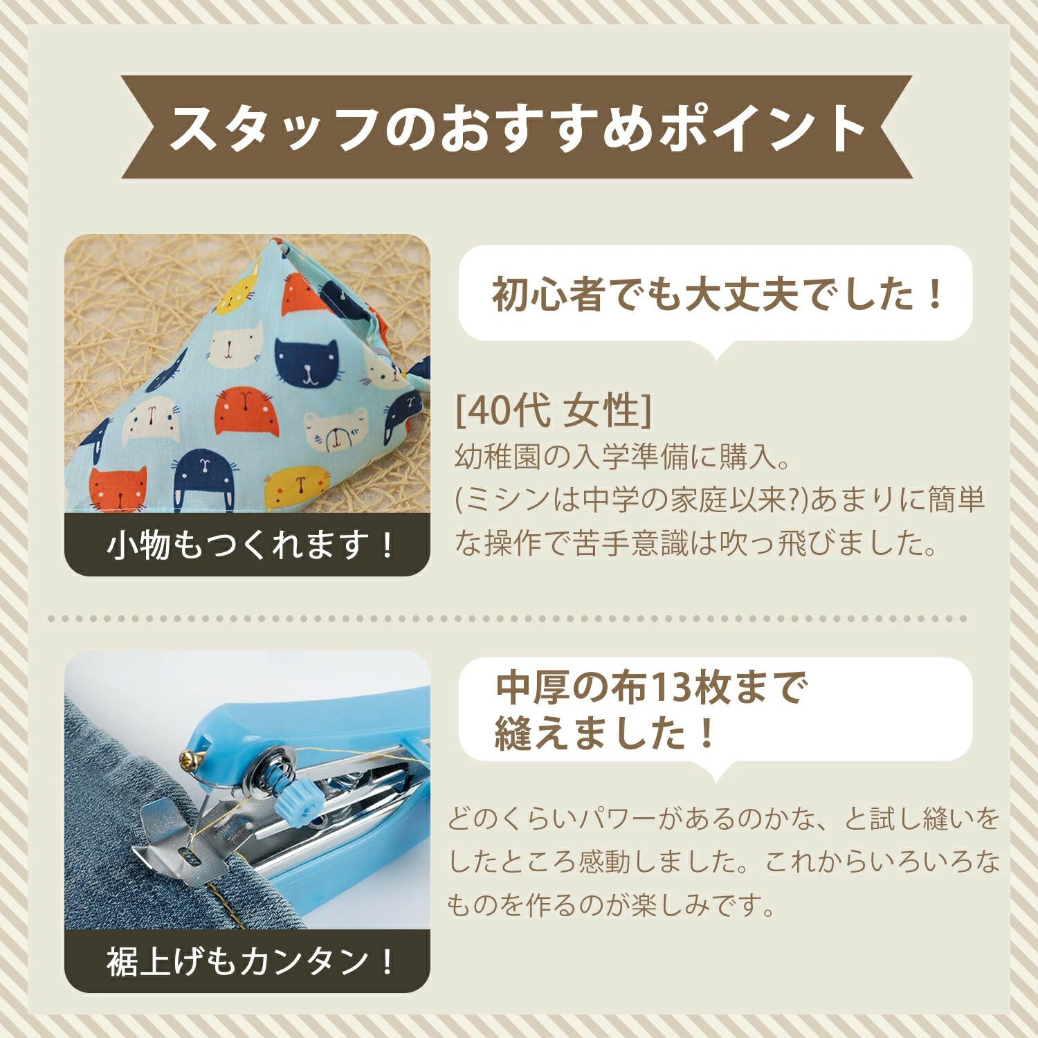 ウール デニム レザーなど 片手でラクラク縫える 初心者でも安心の簡単操作 10%オフクーポン 】 超小型迷ニ手動ハンディミシン