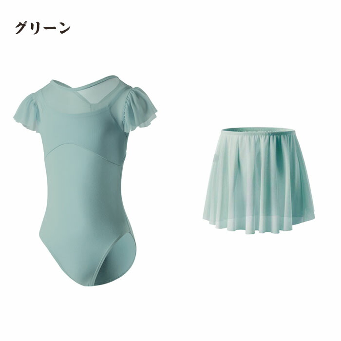 体 キッズウェア スナップボタン 女の子 子供用 バレエ衣装 キッズ 半袖 バレエ2点セット バレエレオタード スカート付き