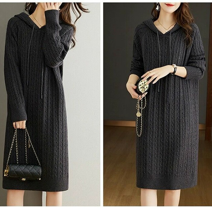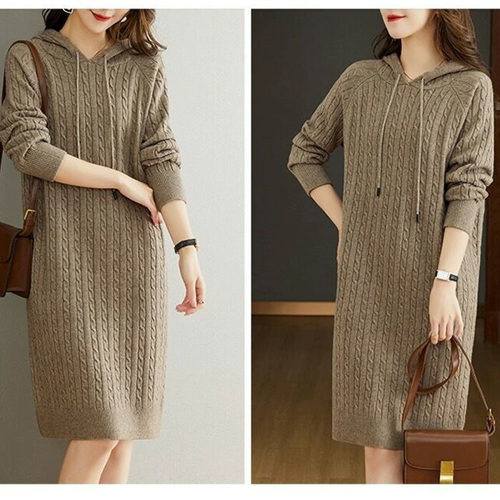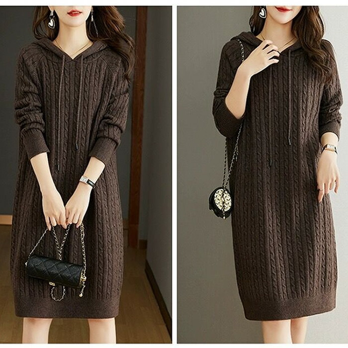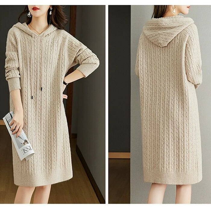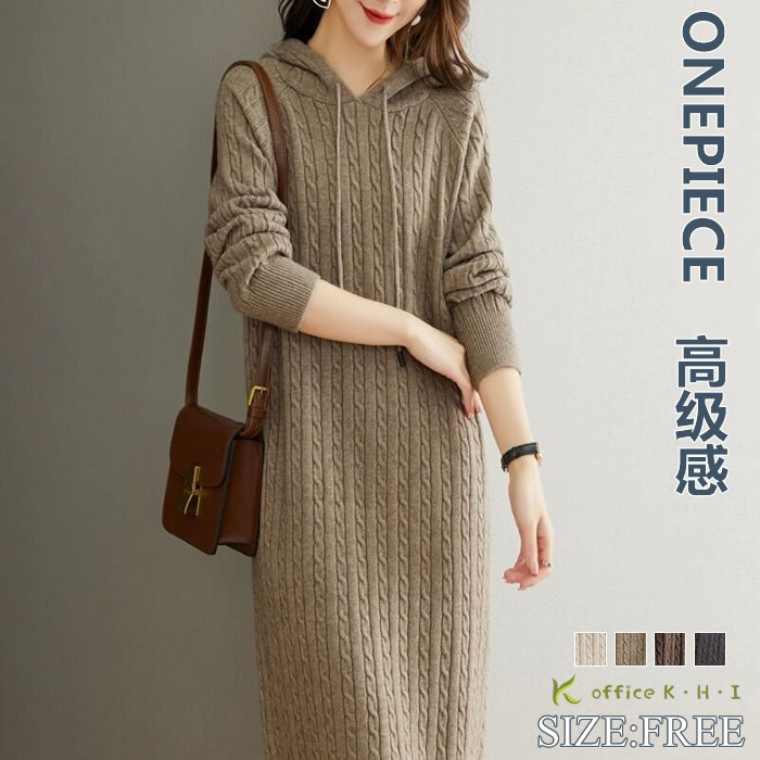 レディースワンピース秋冬 ニットワンピ ワンピース 続々登場 杏色 ブラウン ダークグレー コーヒー色