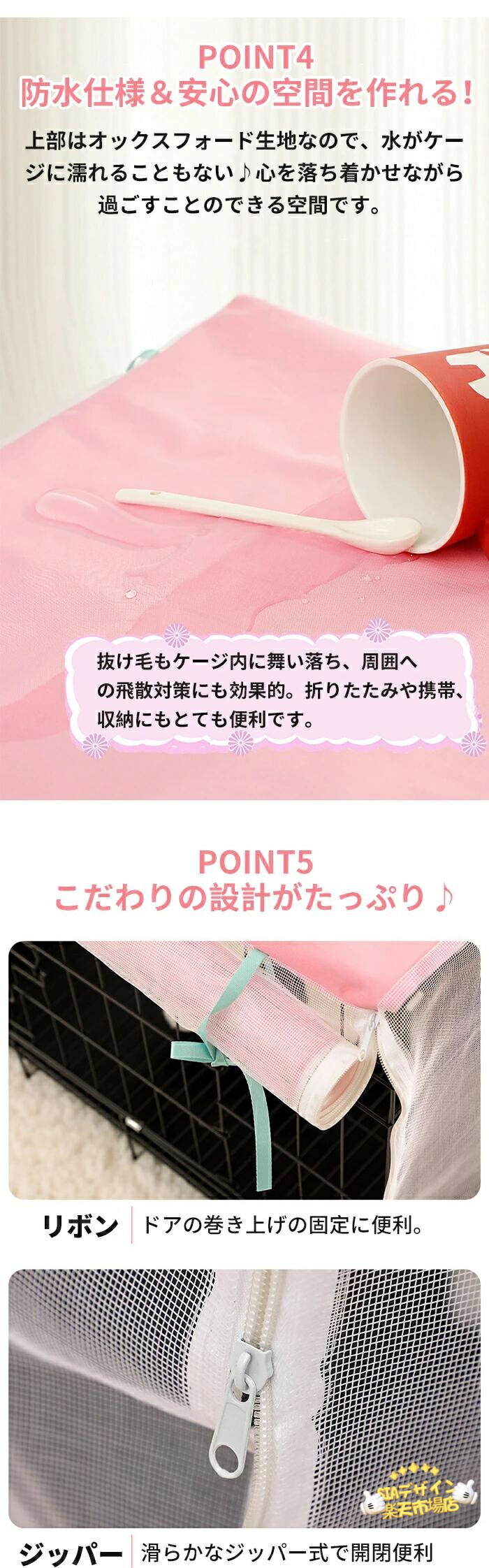 上部はオックスフォード生地なので、水がケージに濡れることもない♪心を落ち着かせながら過ごすことのできる空間です。抜け毛もケージ内に舞い落ち、周囲への飛散対策にも効果的。折りたたみや携帯、収納にもとても便利です。
