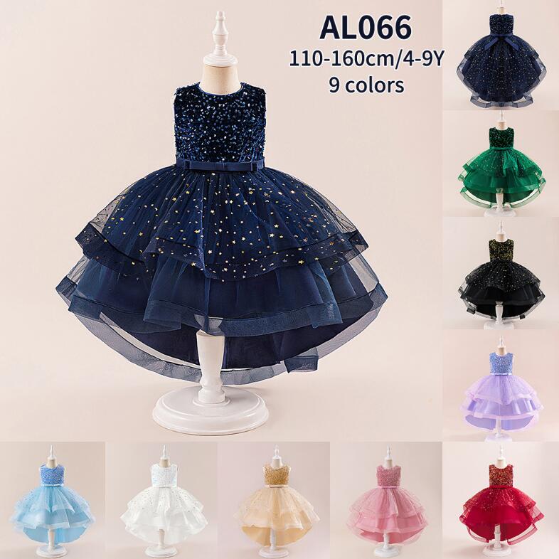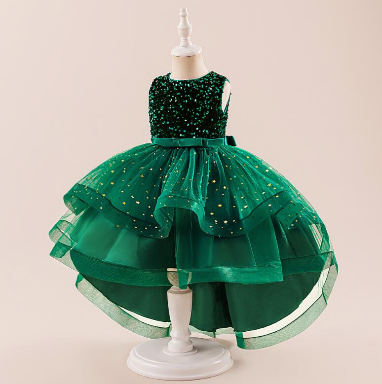 女の子 フォーマルワンピース 星月スパンコール付き マーメイド プリンセスドレス 袖なし 重ね重ね ティアードドレス ピアノ 発表会 演出服 可愛い ボリューム ワンピース 9色 キラキラ