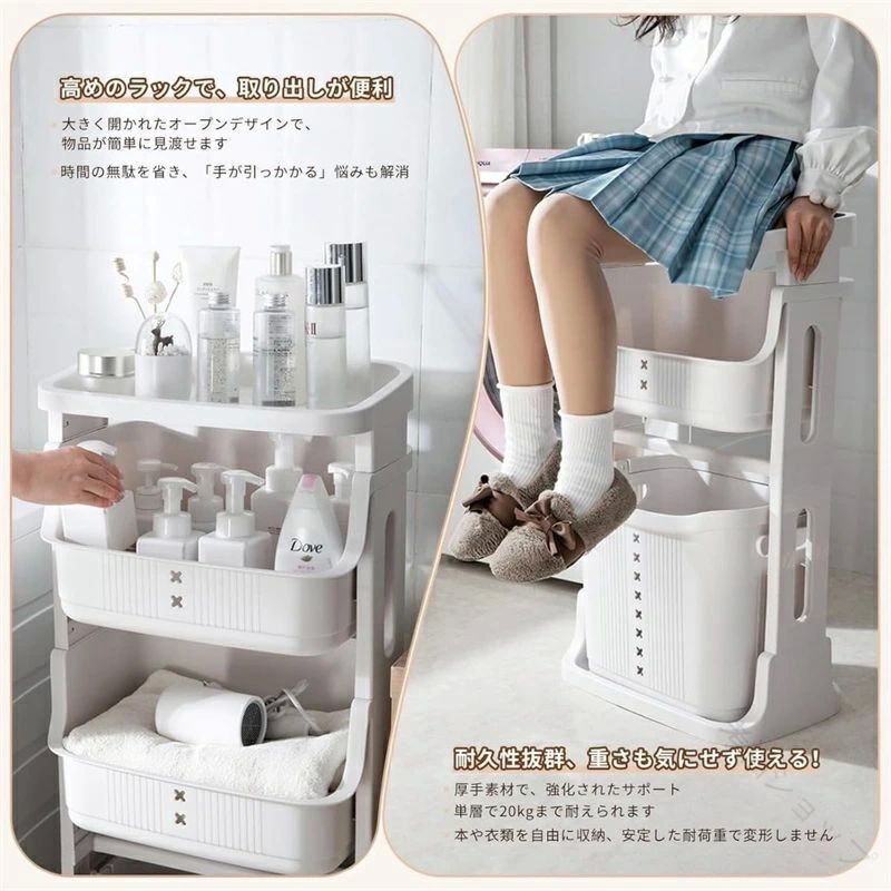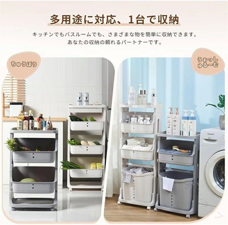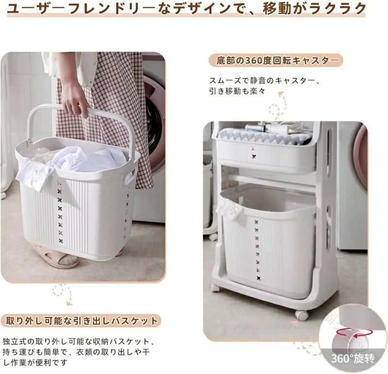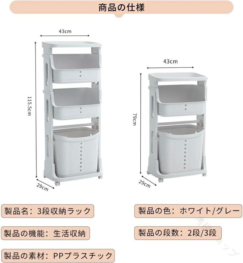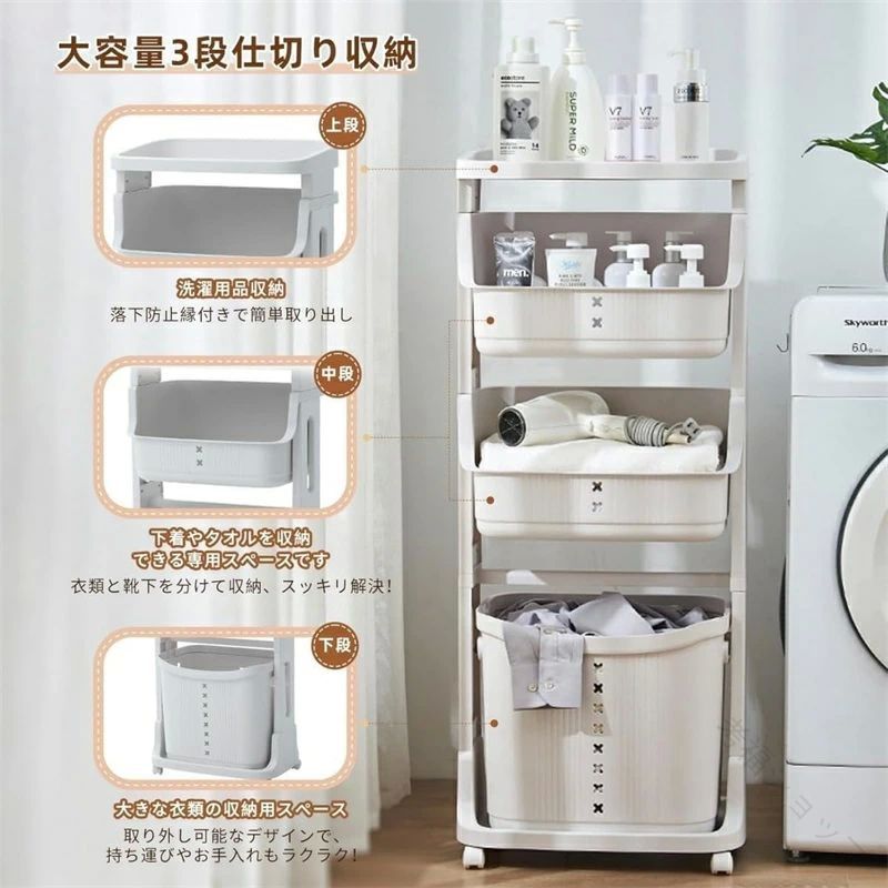 大容量80Lバスケットラック 洗濯かご ホワイト グレー 2段 3段 かごのみ