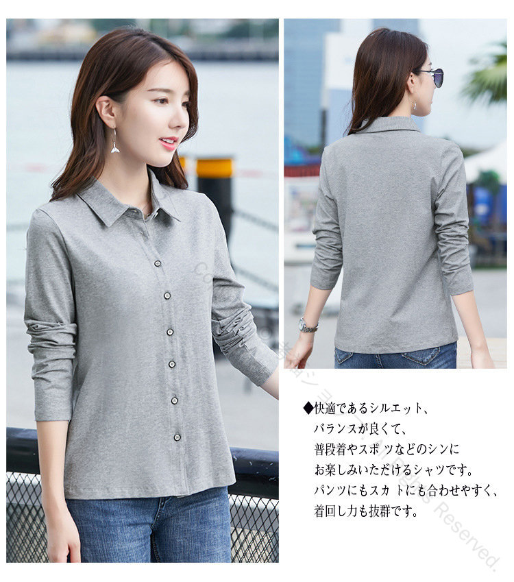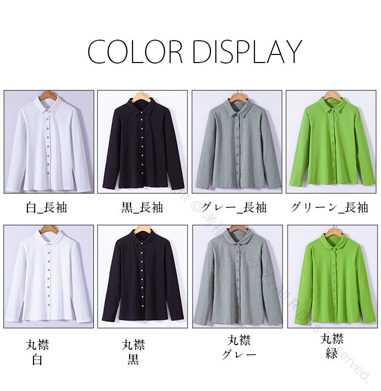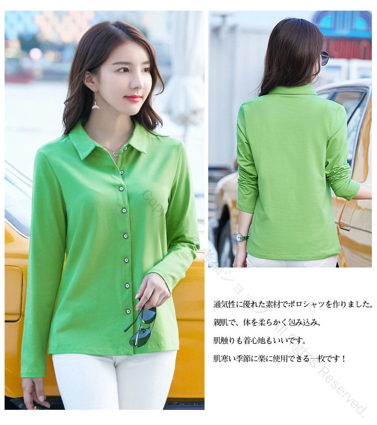 ポロシャツ レディース 長袖 シャツ トップス ポロシャツ 通販 白 黒 グレー グリーン 白_丸襟 黒_丸襟 グレー_丸襟 グリーン_丸襟 M L XL 2XL 3XL