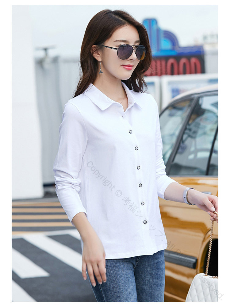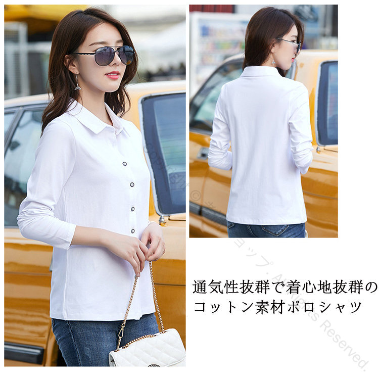 ポロシャツ レディース 長袖 シャツ ゴルフウェア トップス カットソー 大きいサイズ ゆったり 前開き 無地 薄手 綿 コットン 秋 白 ボタン付き 介護 仕事 ゴルフ スポーツ ユニフォーム 制服