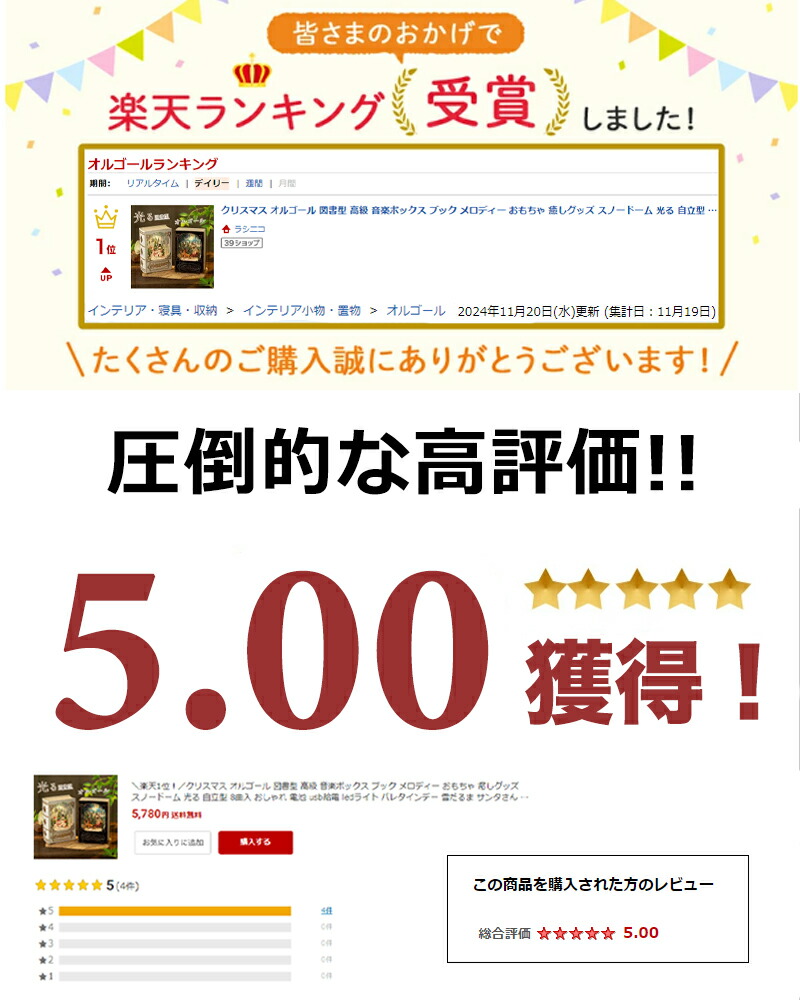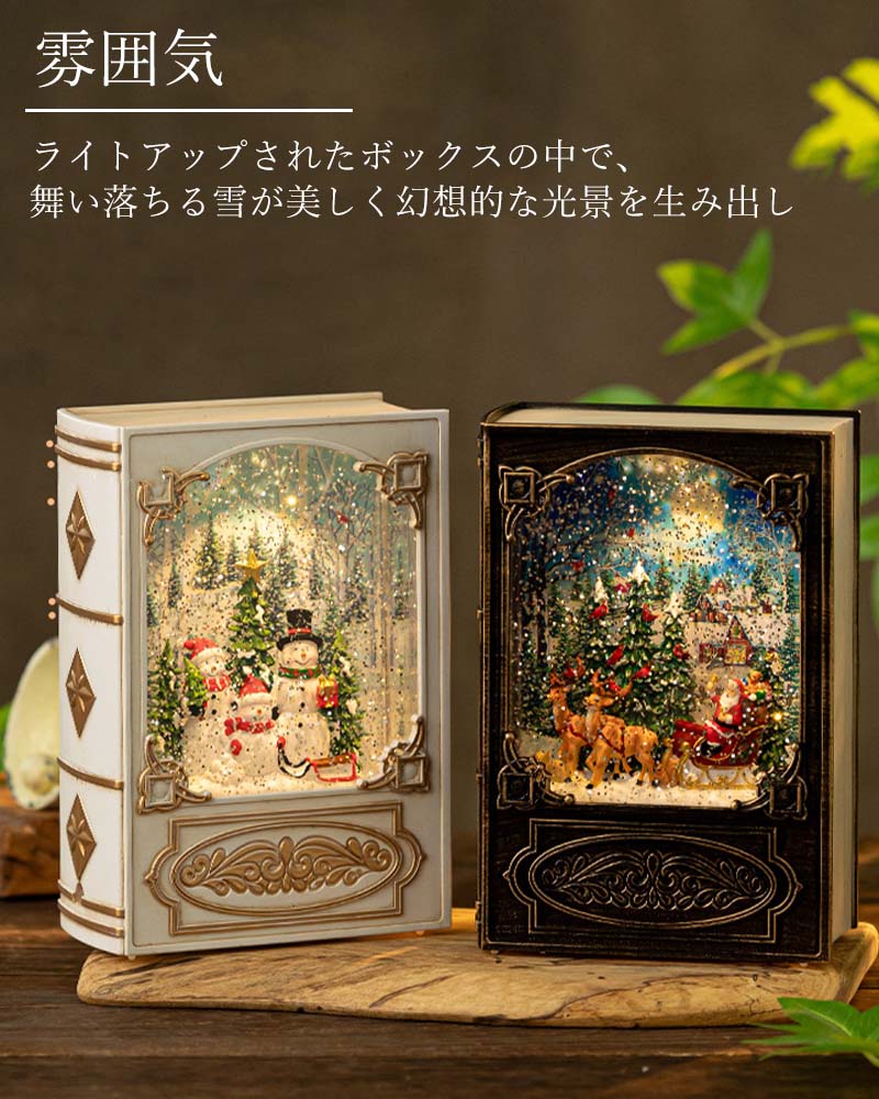 クリスマス オルゴール 図書型 高級 ブラック ホワイト