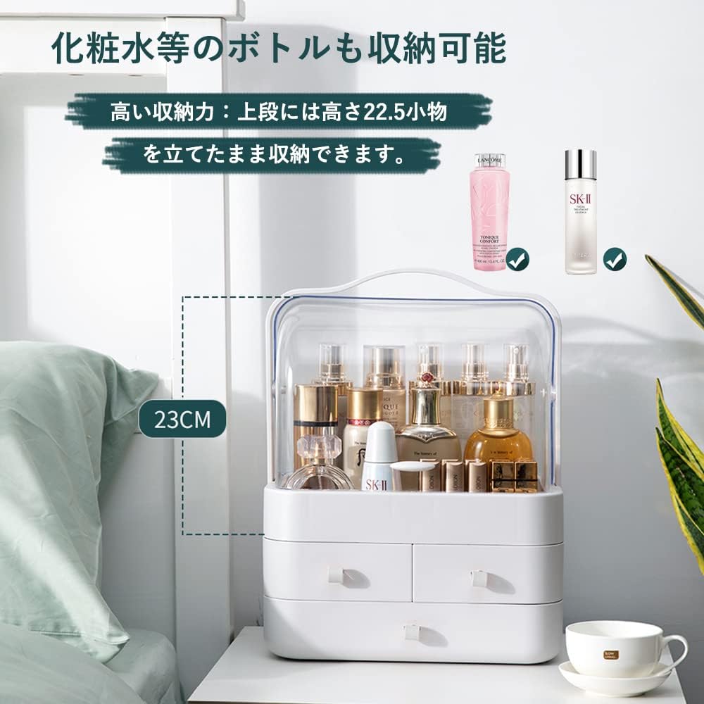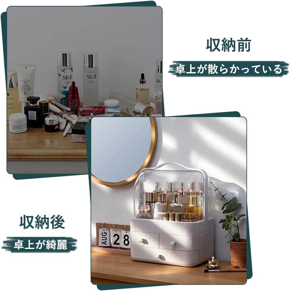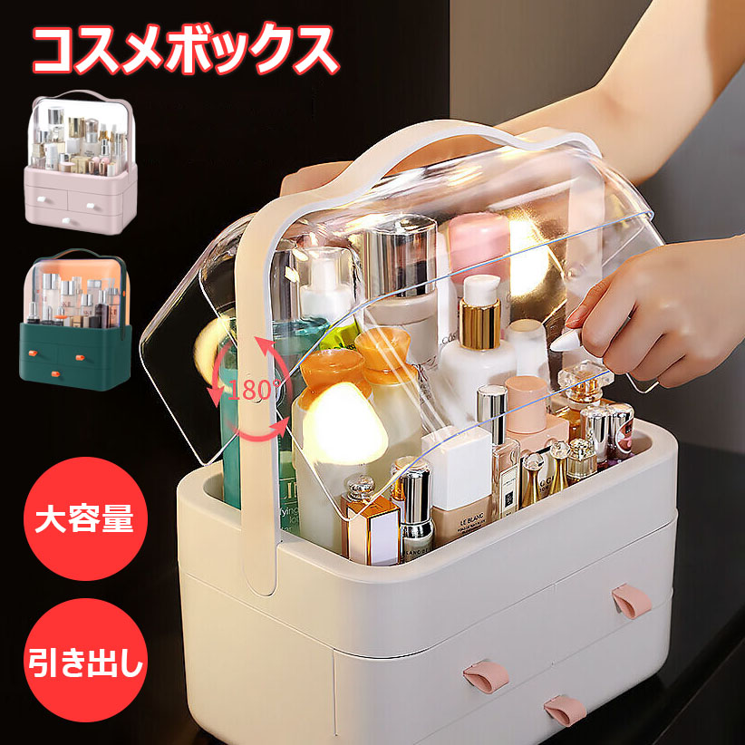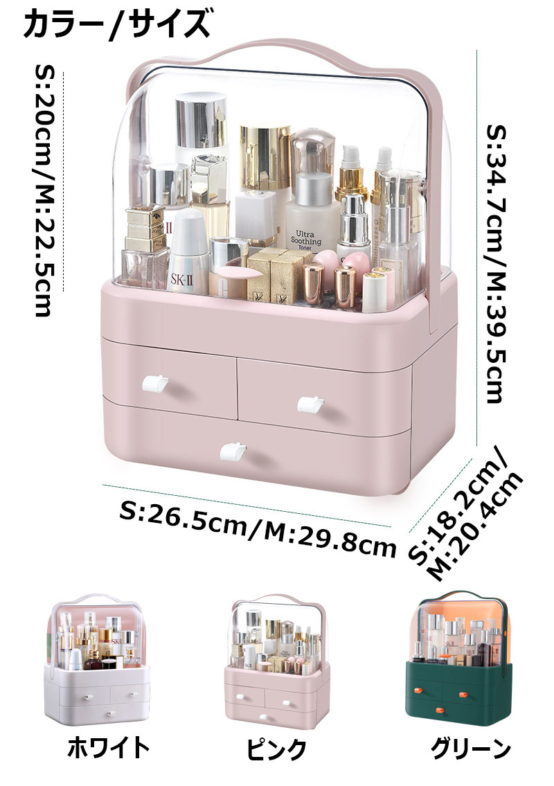 化粧品収納ボックス メイクボックス 大 ホワイト ピンク グリーン S:26.5*18.2*34.7cm M:29.8*20.4*39.5cm