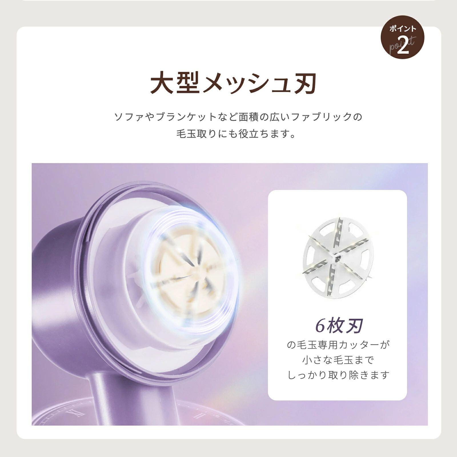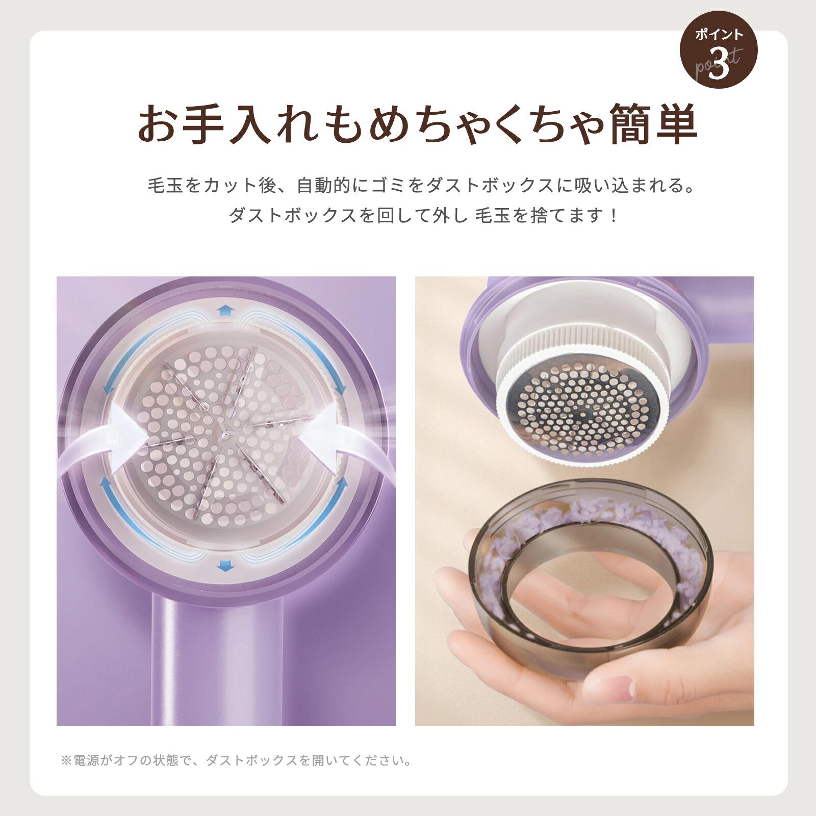 毛玉取り けだまとり 電動 LCD液晶 ホワイト パープル