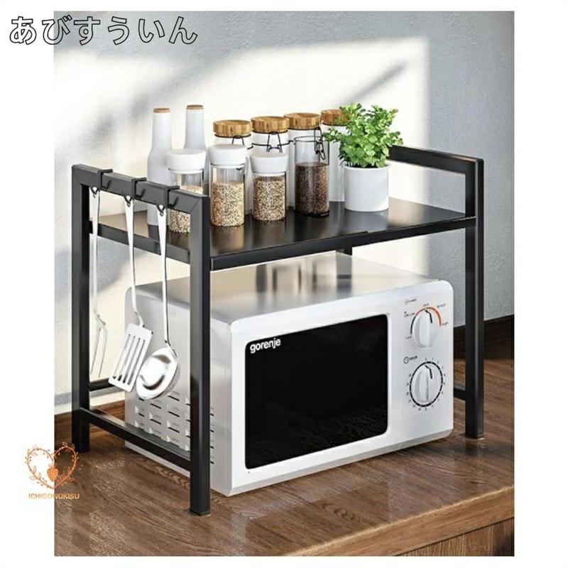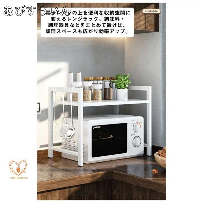 レンジ上ラック 1段 2段高さ調整 キ キッチン整理用品 整理ボックス 続々入荷中 ホワイト ブラック 1段フック6個付 2段フック6個付