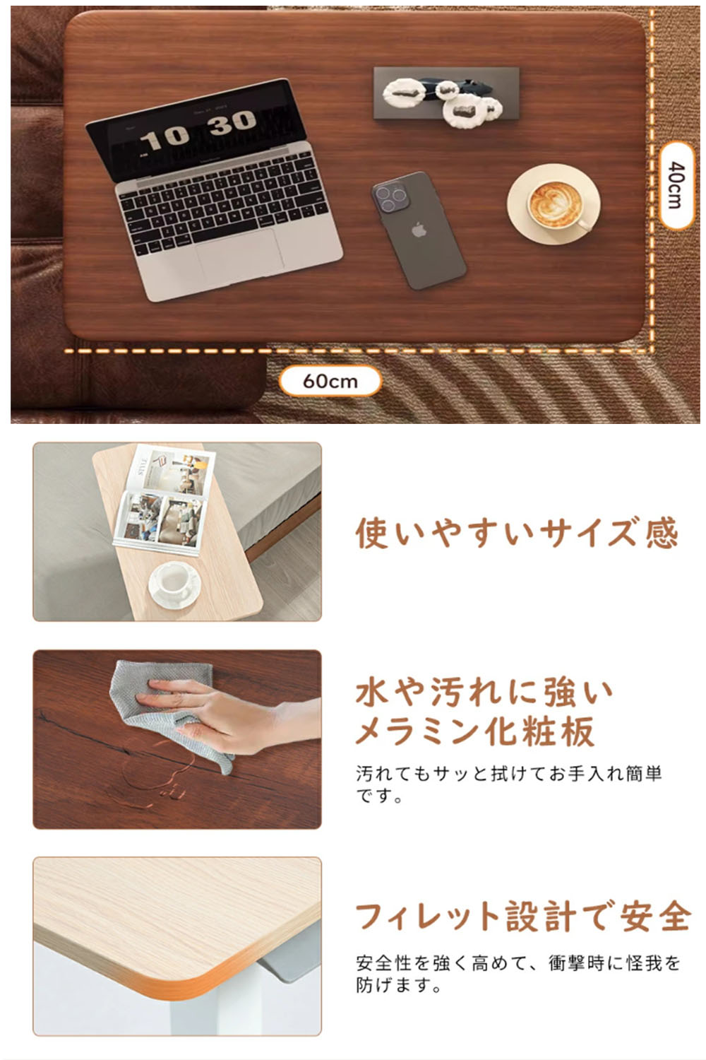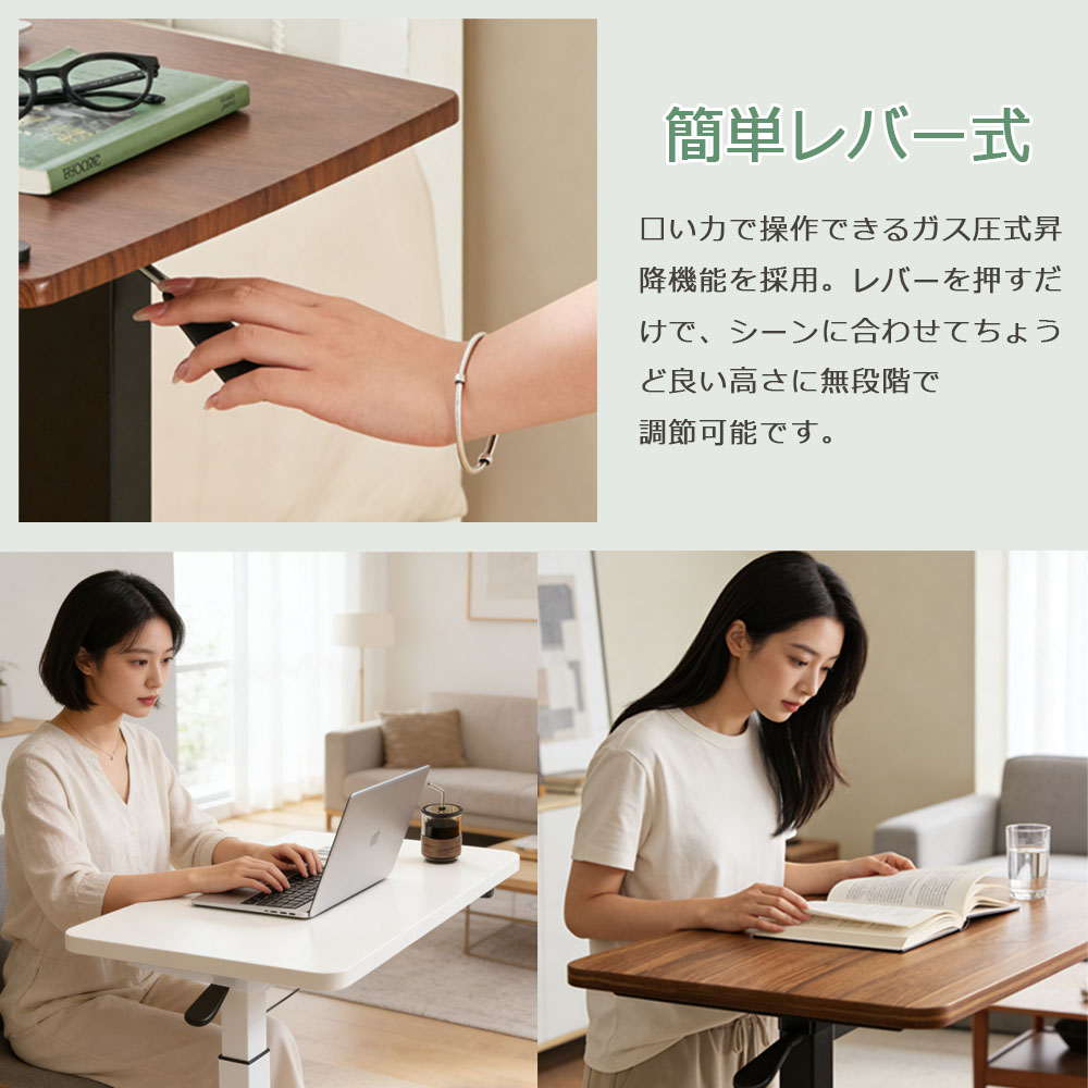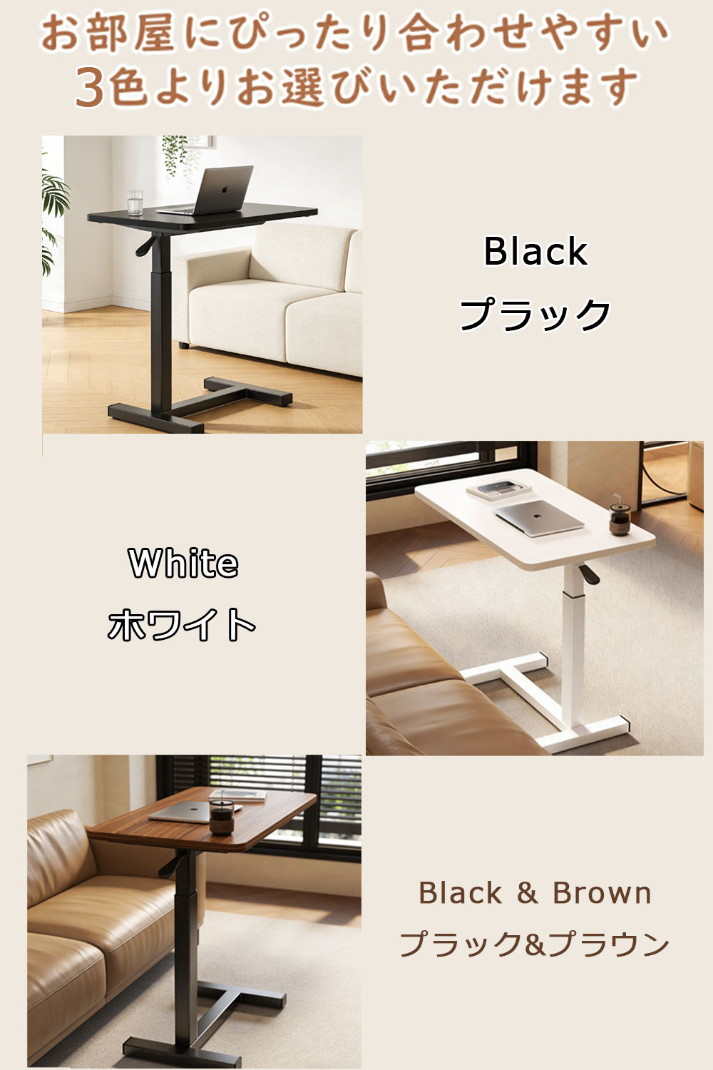 サイドテーブル 高さ調節 自動車用冷却 ブラウン ホワイト ブラック