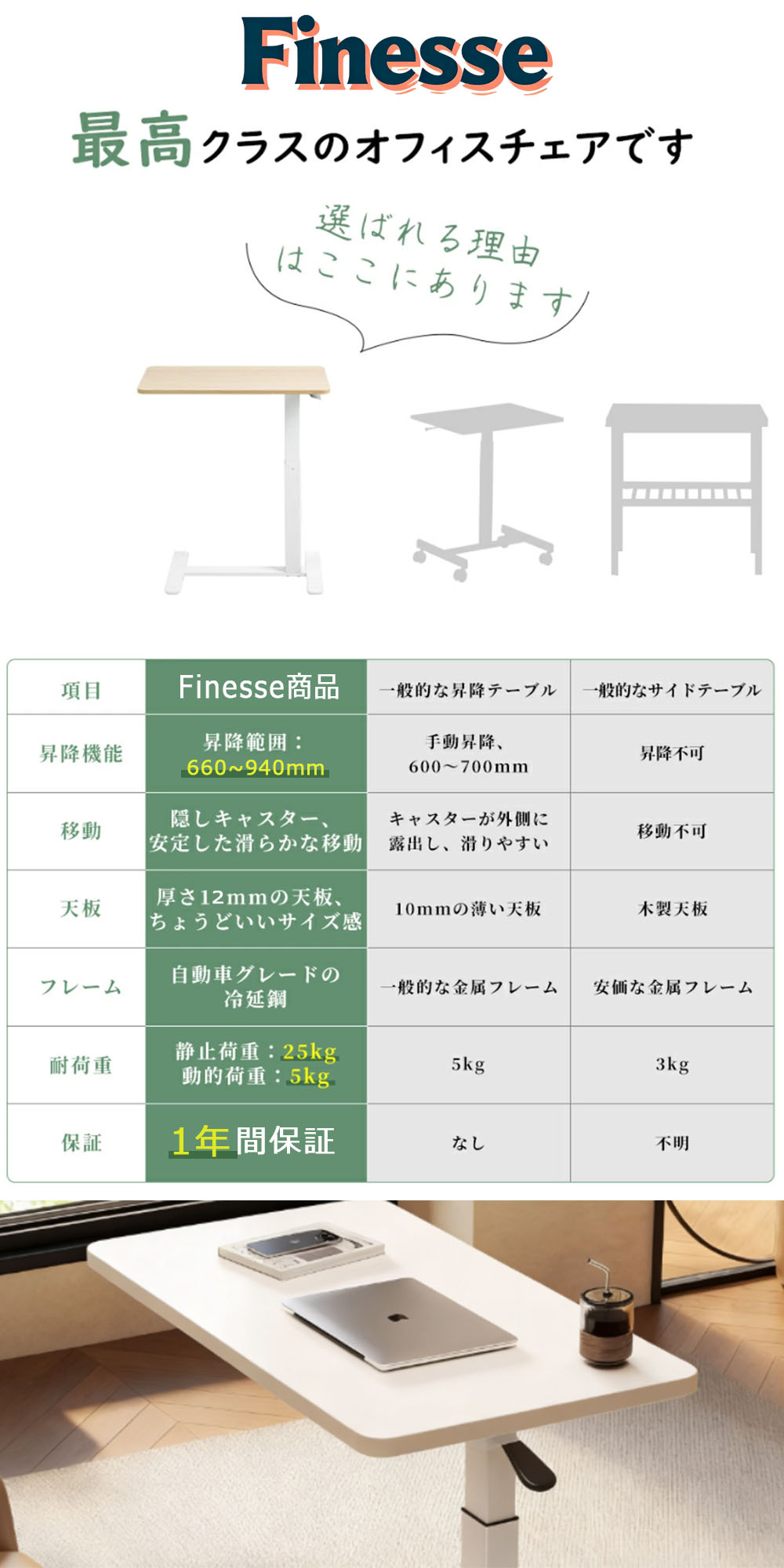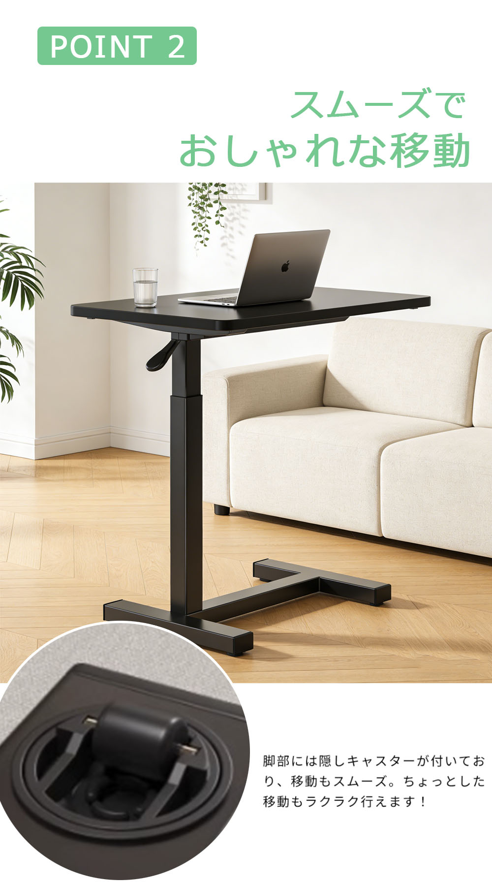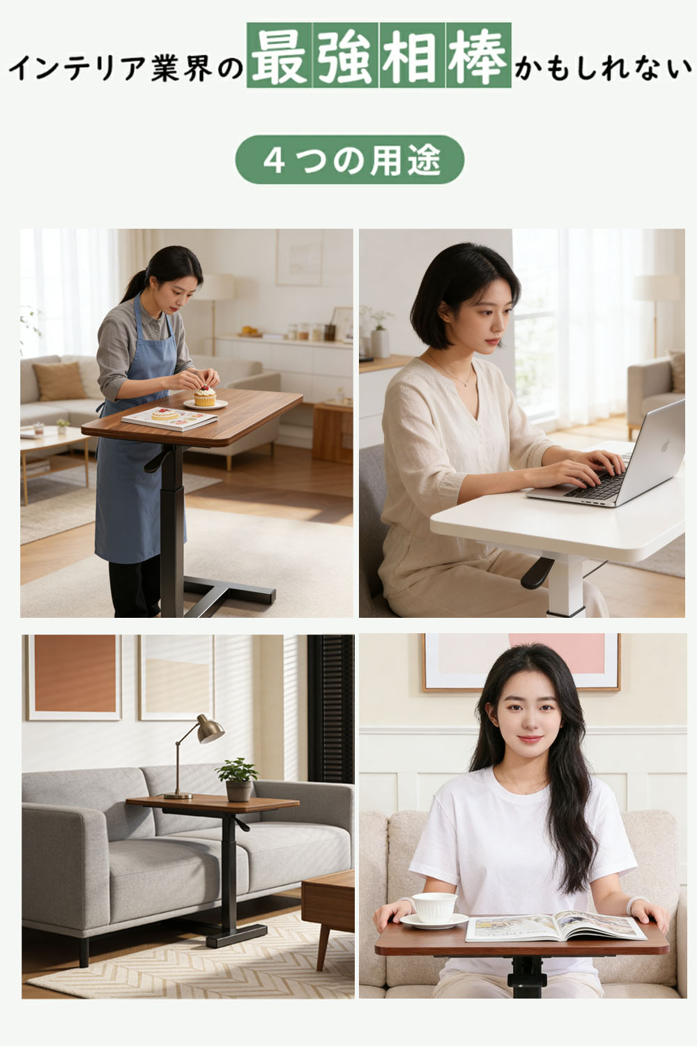 サイドテーブル 高さ調節 自動車用冷却 ブラウン ホワイト ブラック