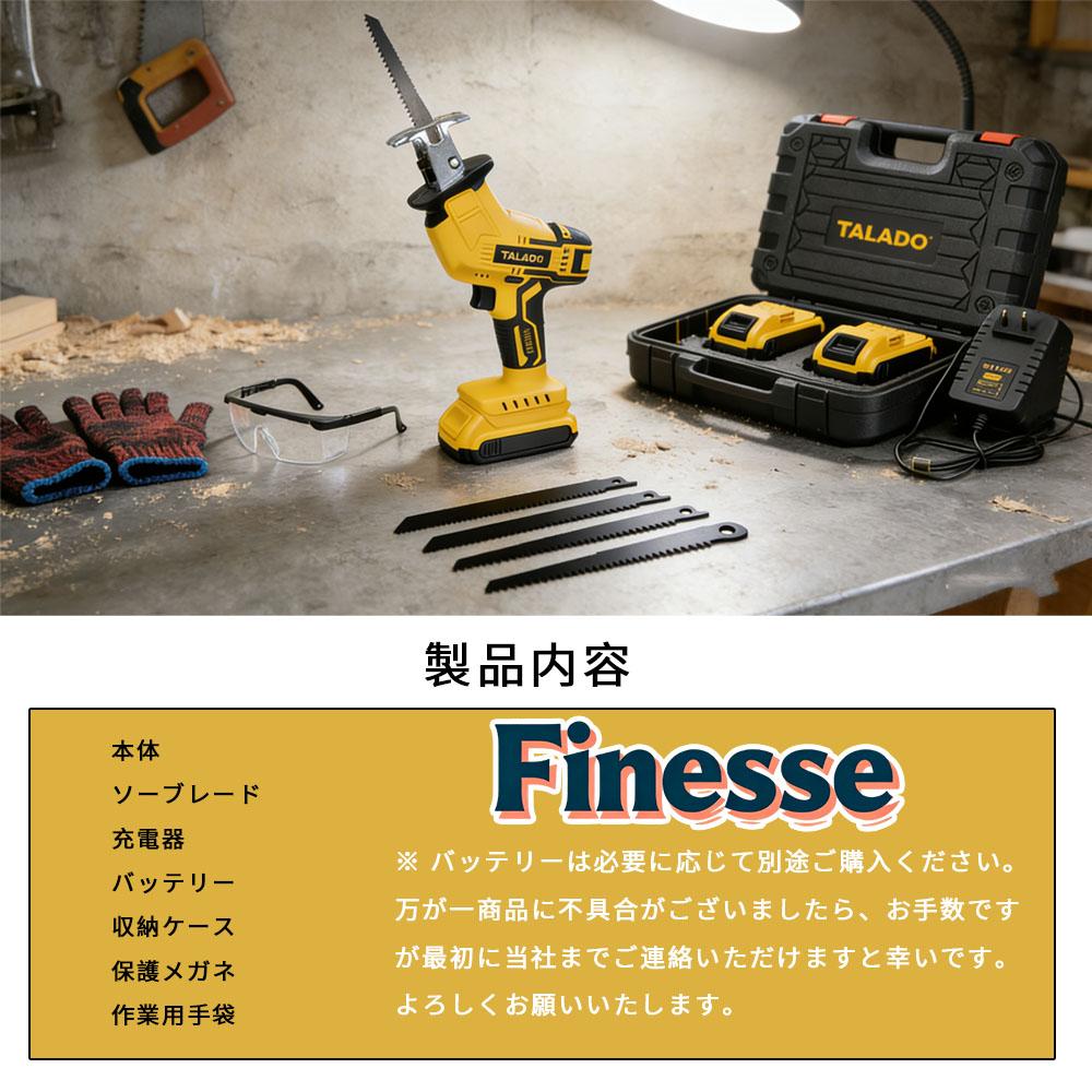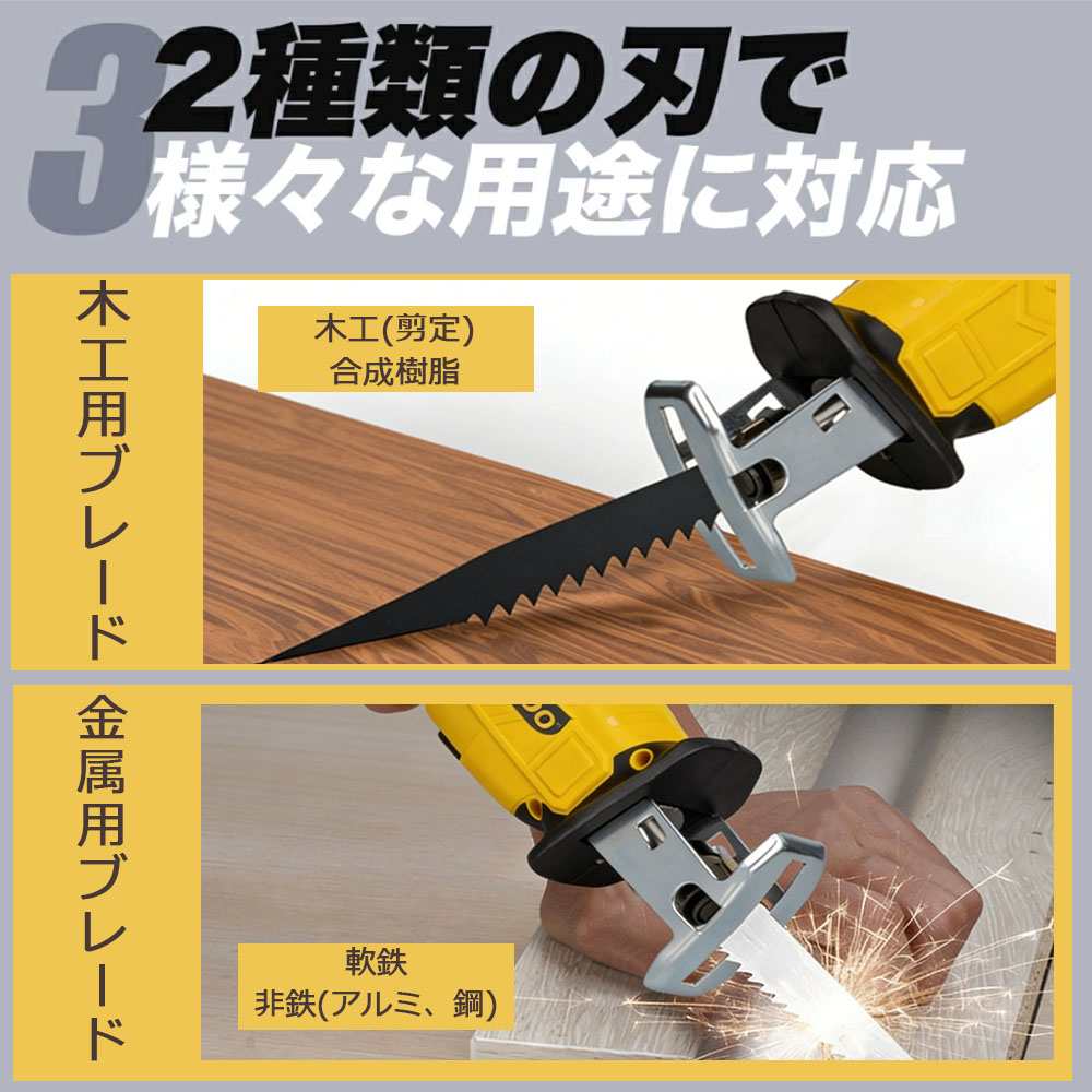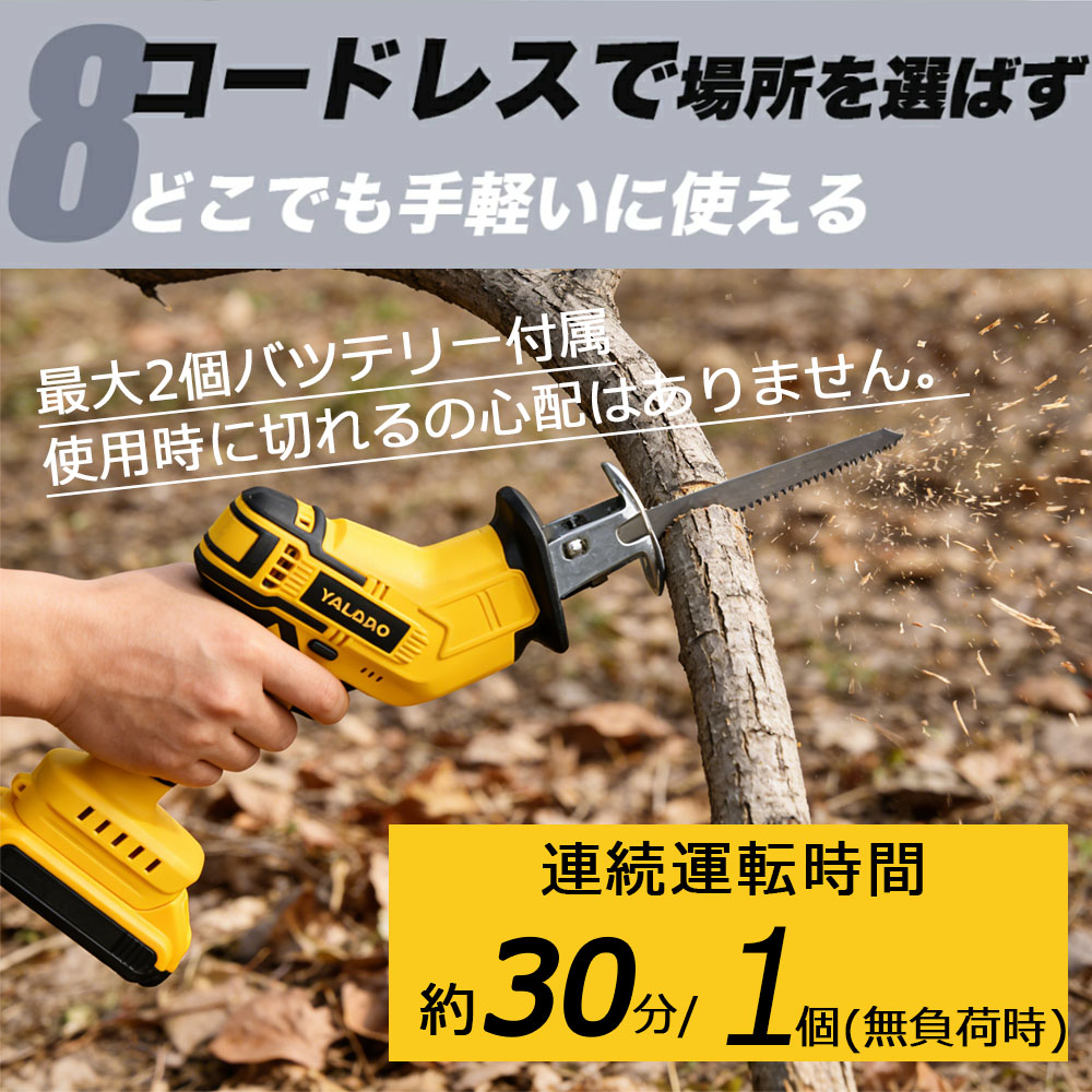 レシプロソー 電動のこぎり 電動ノコギ バッテリー1個+充電器1個 バッテリー2個+充電器1個