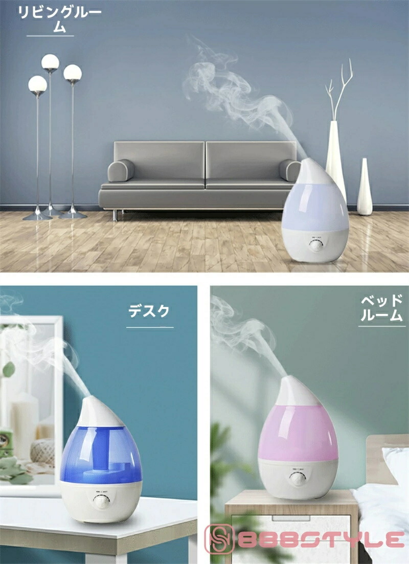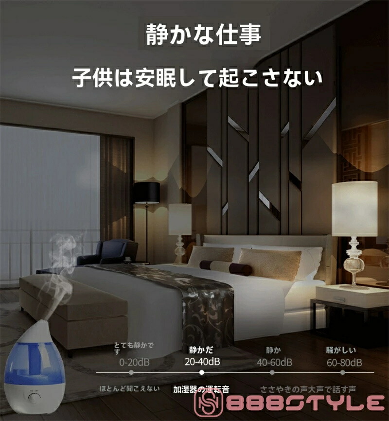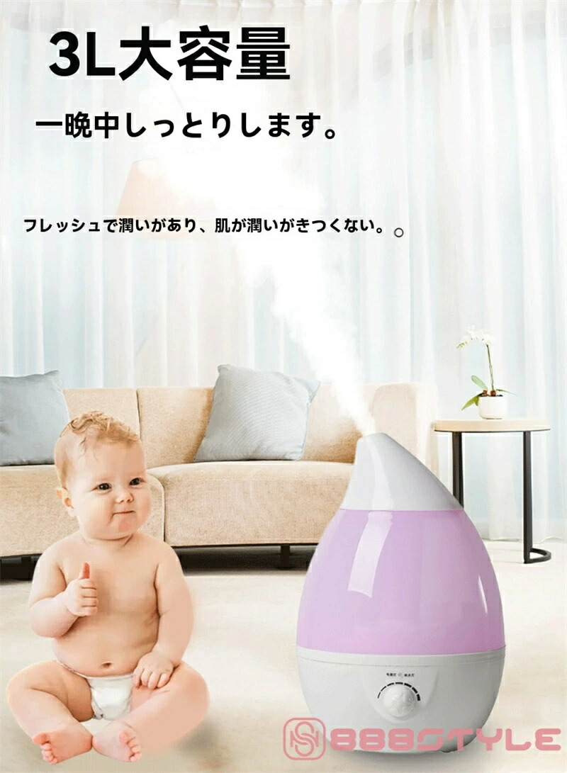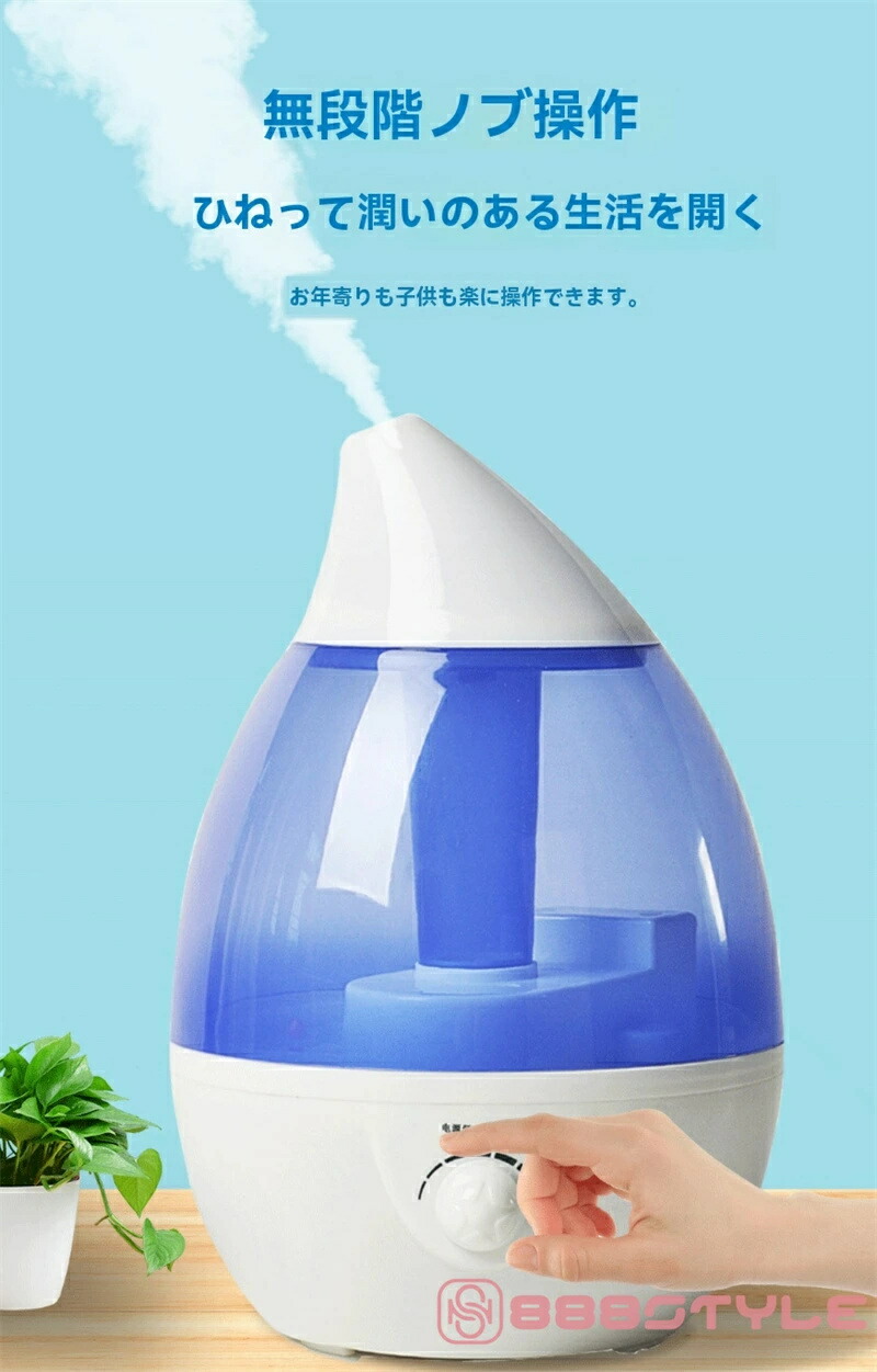 加湿器 大容量 卓上 おしゃれ 上から給水 アロマ加湿器 小型 しずく型 超音波加湿器 超音波式 アロマディフューザー 4リットル 4L 4.0L 4000ml 抗菌 強力加湿 乾燥 花粉 ウィ 保湿