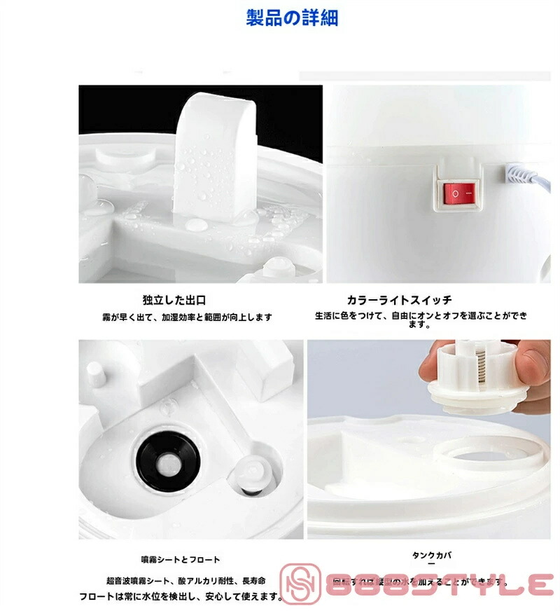 加湿器 大容量 卓上 おしゃれ 上から ホワイト グリーン ピンク ブルー パープル ブラック