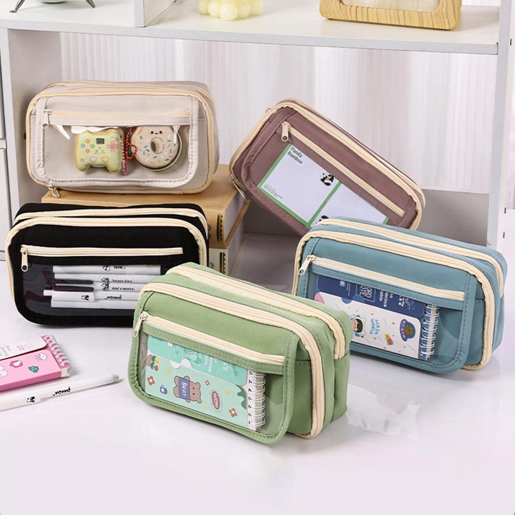 可愛い ペンケース 中学生 透明 クリ 文房具 事務用品 筆記具 ペンケース 人気 グリーン ベージュ ブラック ブルー パープル