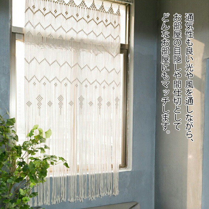 のれん 暖簾 カーテン 手作り編み 縄のれん ストリングカーテン ひもスクリーン 間仕切り 目隠し カット 北欧 マクラメ編み 間仕切りのれん 部屋飾り 透ける 通気性 綿織り ひものれん お 洗濯可