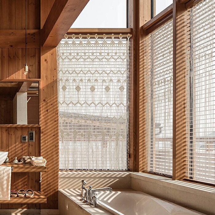 のれん 暖簾 カーテン 手作り編み 縄 ストリングカーテン ひもスクリーン 間仕切り 目隠し カット 北欧 マクラメ編み 部屋飾り 透ける 通気性 暑さ対策 洗濯可 綿織り おしゃれ 編み物 ぶら下げ式 コットン織り インテリア 洋室 無地 タペストリー アジアン 和家具 洋風 和風 ファブリック