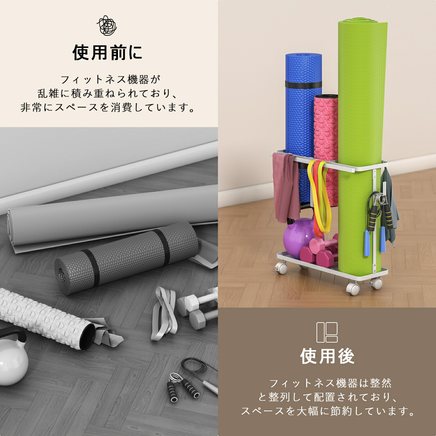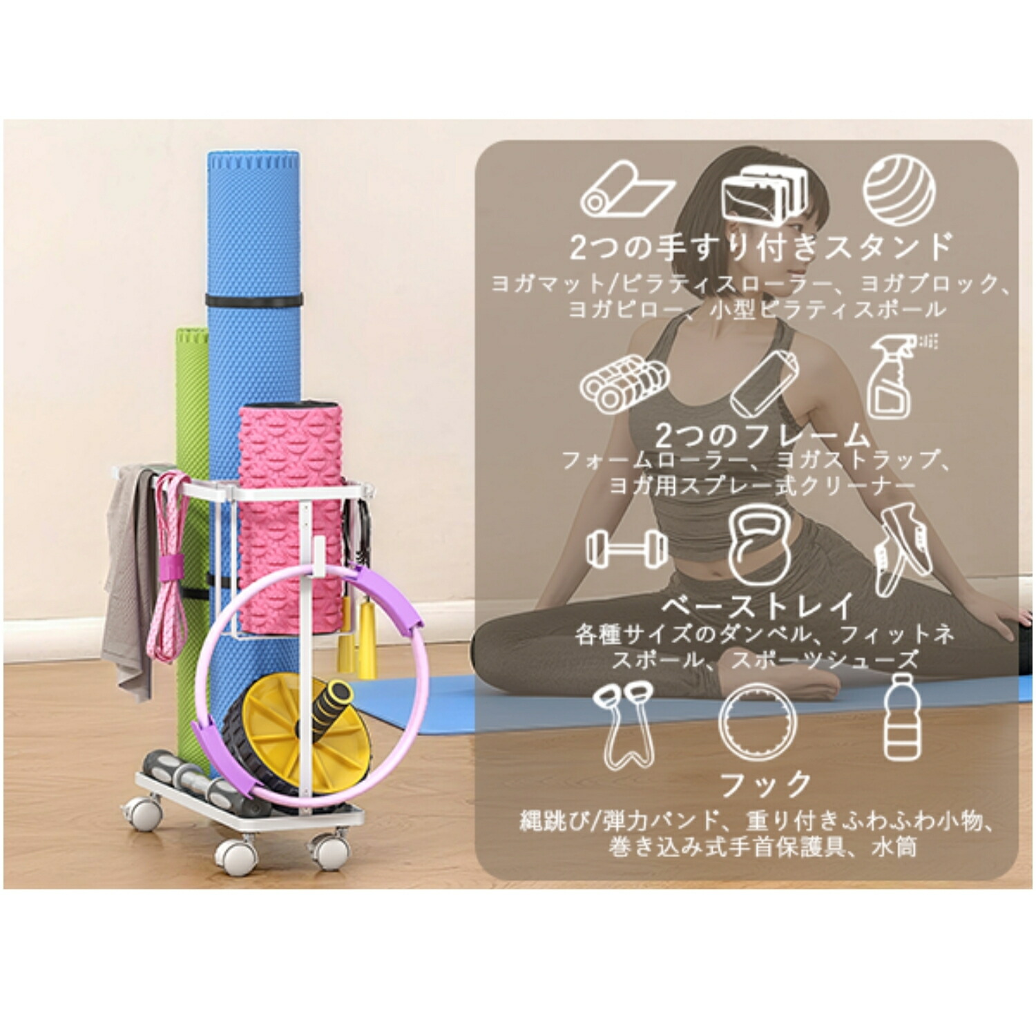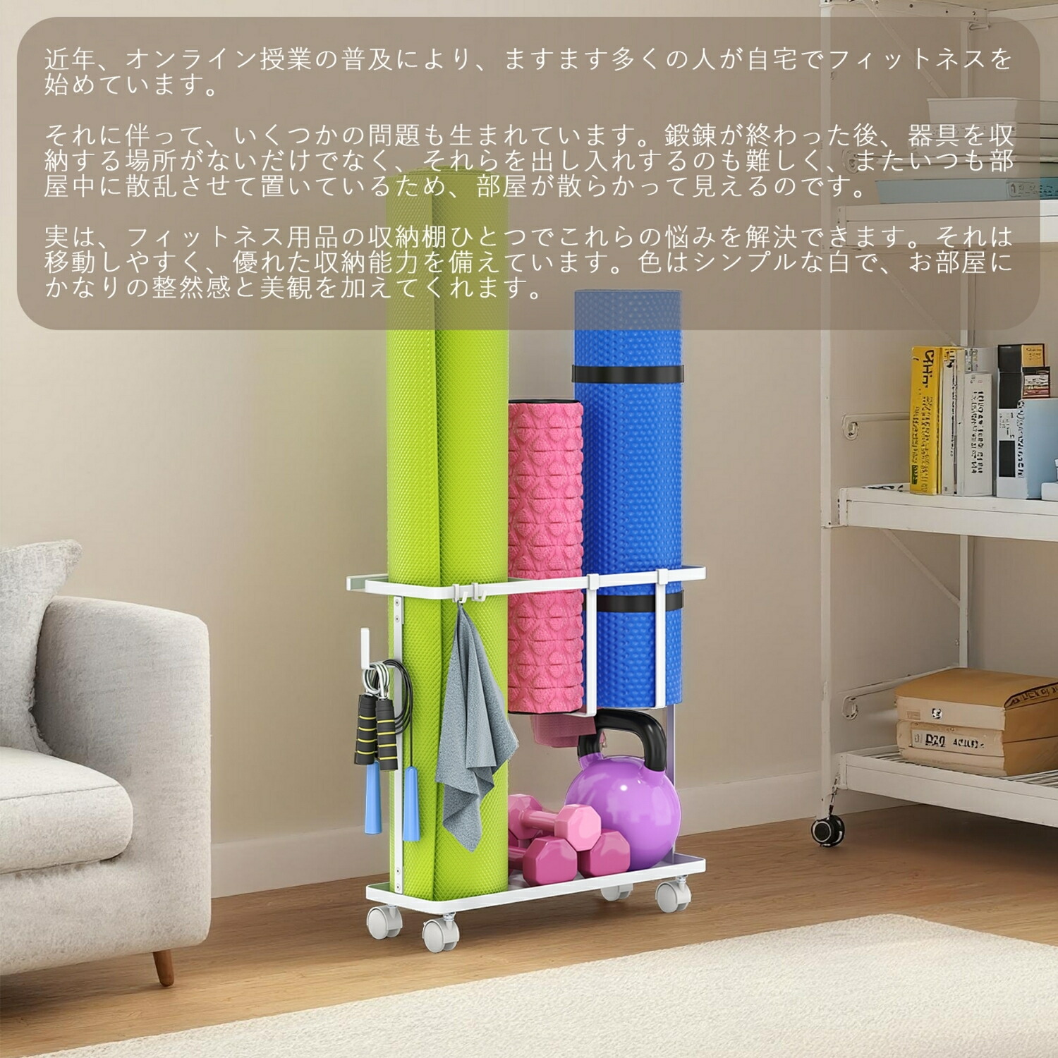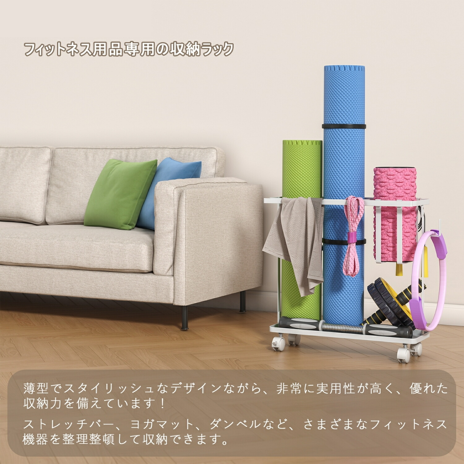 キャスター付き フィットネス収納ラック