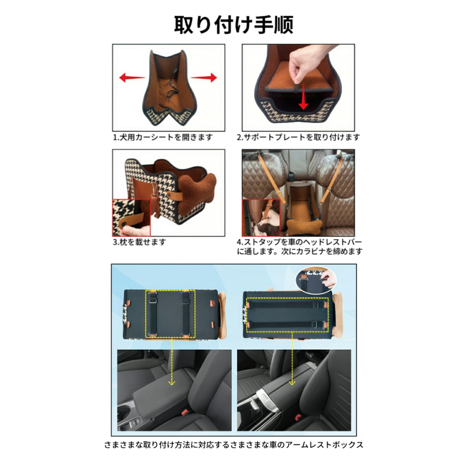 ドライブボックス, ペットキャリー, 犬 車 シート, センターコンソール, アームレスト, 飛び出し防止, 安全ロープ, 犬用 車載ベッド, ペットカーシート, 折り畳み式, キャリーバッグ, 3way, リード付き, ハーネス, 中型犬, 小型犬, 猫, 子犬, 旅行, お出かけ, 後部座席, 花見, アウトドア, 公園, ドライブベッド, 両面クッション, 夏冬兼用, 可愛い,
