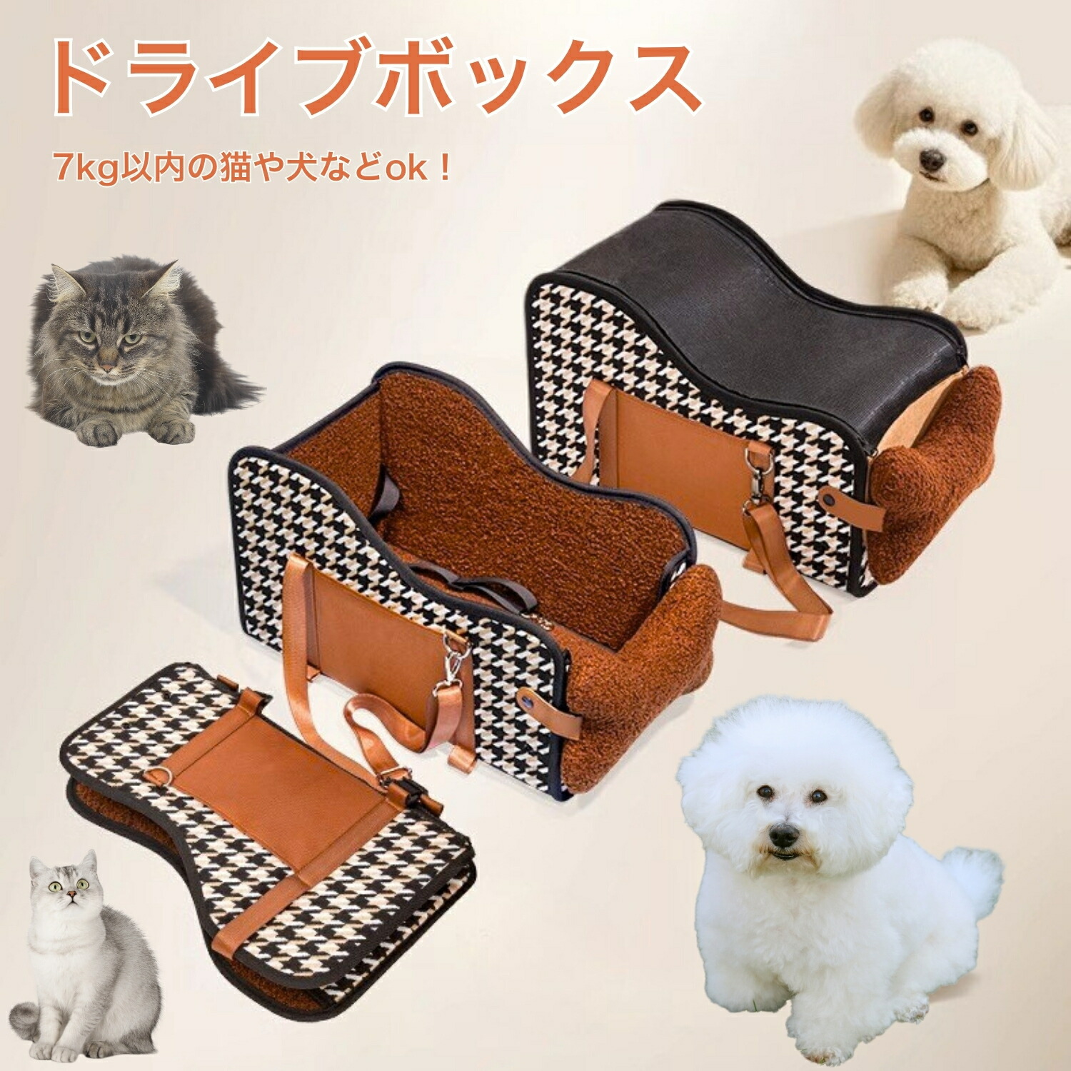 対象ペット:体重7kg以下の小型犬、子犬、猫 など