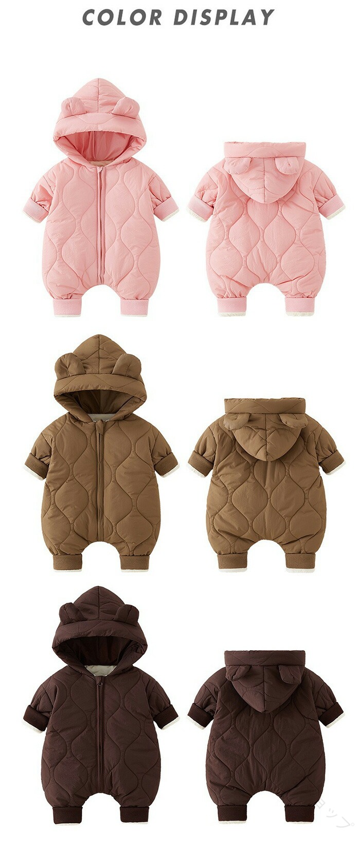 新生児冬用防寒ジャンプスーツ 赤ちゃん ベビー ベビー服 ファッション カバーオール ロンパース 通販 グリーン コーヒーA ホワイト ピンク コーヒーB ブラウン 66cm 73cm 80cm 90cm 100cm