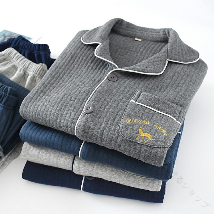 パジャマ メンズ 冬 長袖 セット 快 インナー 下着 ナイトウエア 豊富な品揃え ダークブルー ネイビー ライトグレー ダークグレー M L XL