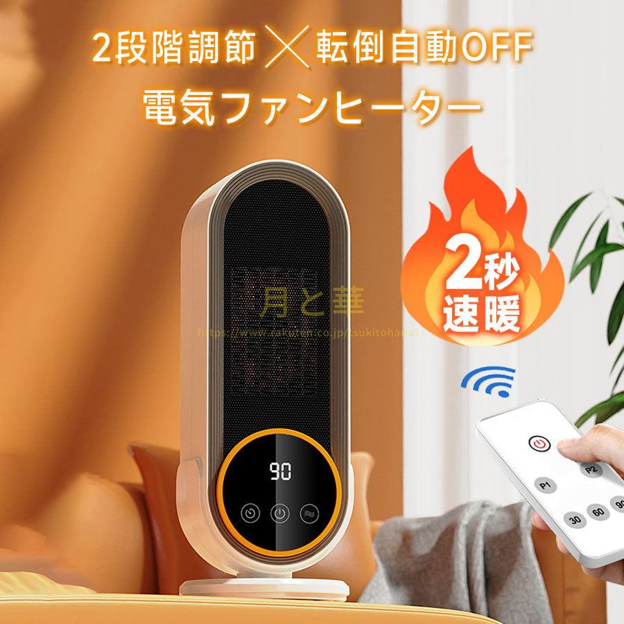セラミックヒーター 2秒速暖 2段階調 通常タイプ リモコン付きタイプ ベージュ パープル