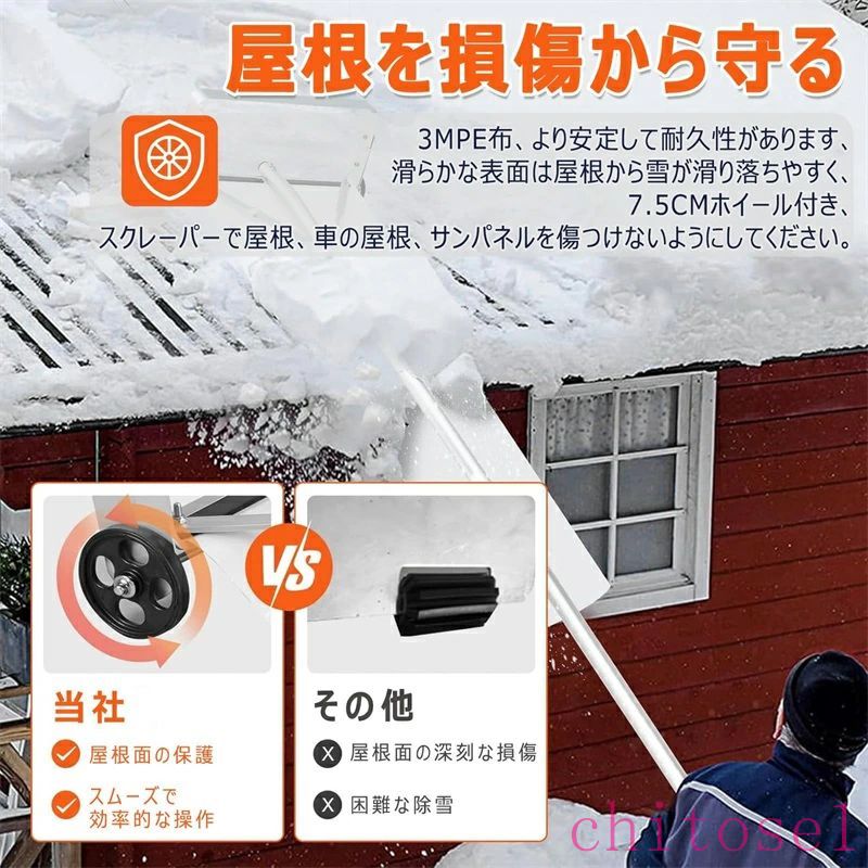 この住宅屋根用雪かきは、広い範囲をカバーできる 19 インチの大型スクレーパーを備え、スライドクロスと組み合わせることで、1 回の操作でより多くの雪を除去できます。雪かきの効率が向上し、迅速かつ省力化され、屋根への負担を軽減します。