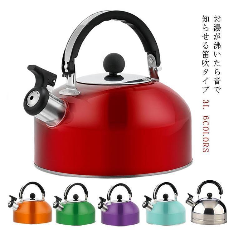 笛吹きケトル 湯沸かし器 やかん 3L キッチン用品 食器 調理器具 特集 赤 紫 青 オレンジ 緑 ステンレス