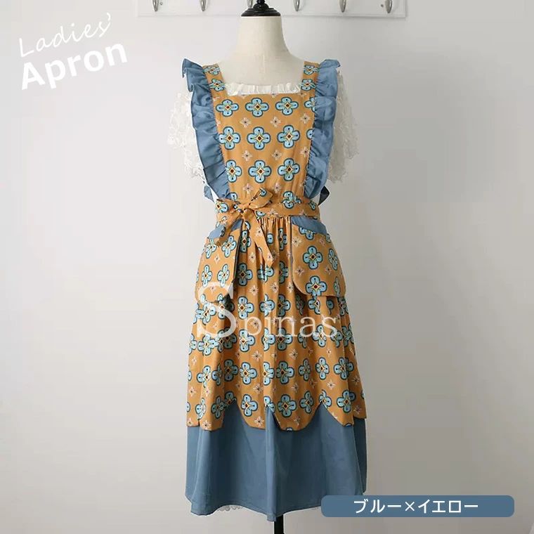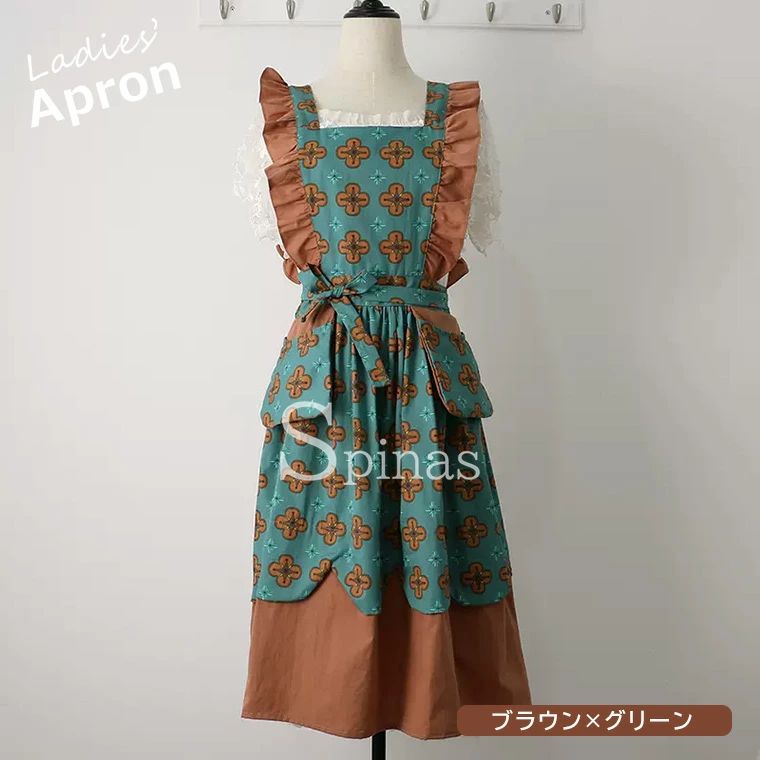 ナチュラルな雰囲気で家事も楽しく エプ ブラウン×グリーン ブラウン×グレー ブルー×イエロー