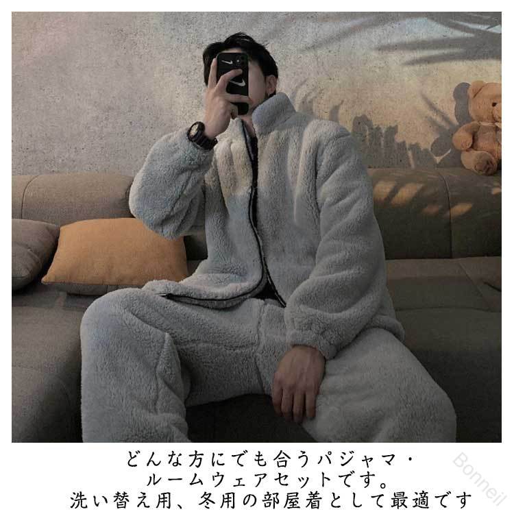 厚手 長袖 セットアップ ボア ルーム インナー 下着 ナイトウエア 豊富な品揃え ブラックセット グレーセット ブルーセット― M L XL 2XL 3XL