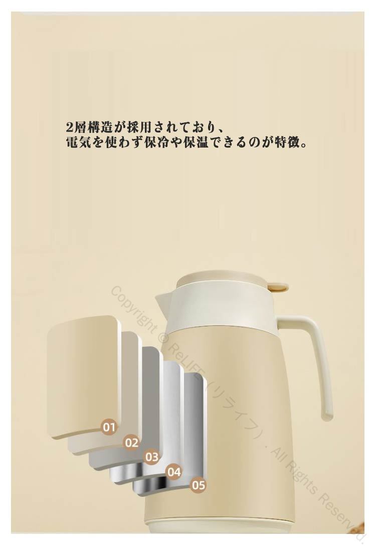 1. ポット 魔法瓶 大容量 保温 保 キッチン用品 食器 調理器具 新登場! アイボリー コーヒー 0.8L 1L 1.3L 1.6L 1.9L 2.1L