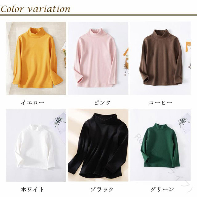 キッズ タートルネック 長袖Tシャツ キッズ トップス Tシャツ カットソー 新登場! ブラック ホワイト コーヒー グリーン イエロー ピンク 100cm 110cm 120cm 130cm 140cm 150cm 160cm