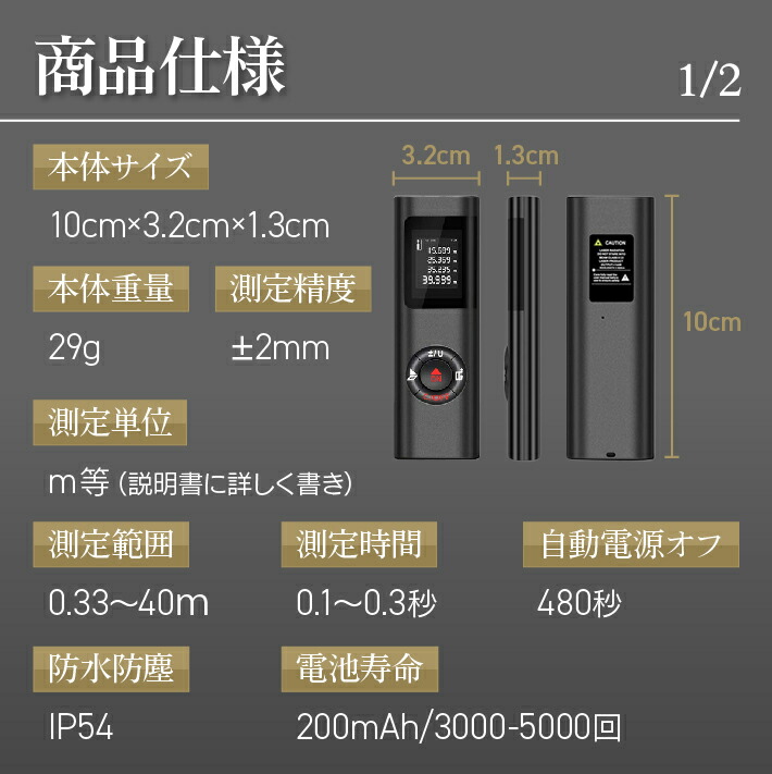 パッケージリスト:距離計 * 1 USBケーブル * 1 日本語取扱説明書 * 1