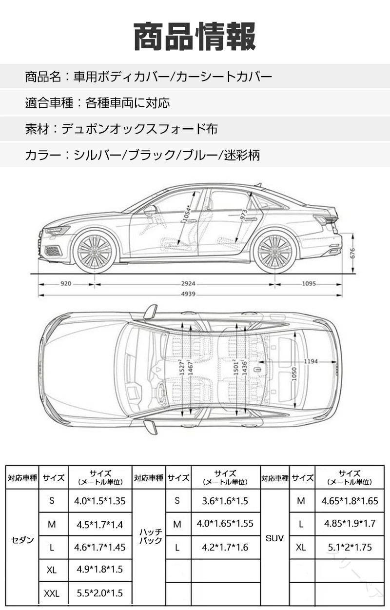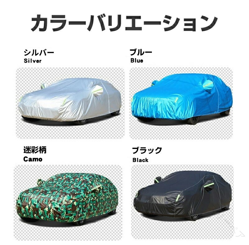 車カバー ボディ保護 UVカット 防水 シルバー ブラック ブルー 迷彩柄 セダン ハッチバック SUV