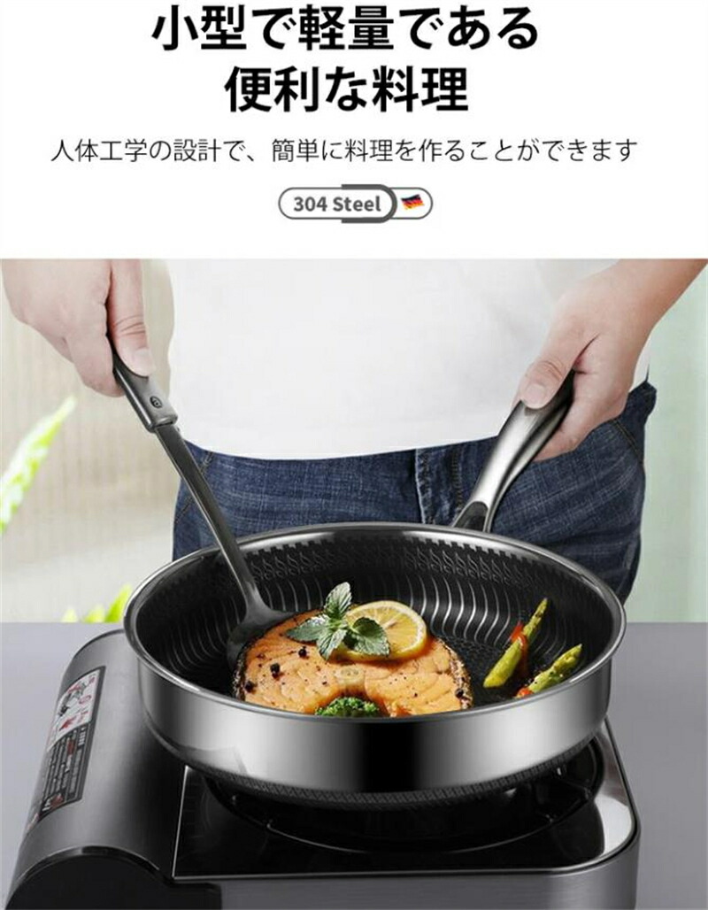 焦げ付き防止304ステンレス鋼フライパン 両面ハニカムステーキポ焦げ付き防止304ステンレス鋼フライパン 両面ハニカムステーキポット 油煙なし鍋 ステンレス鋼調理器具
