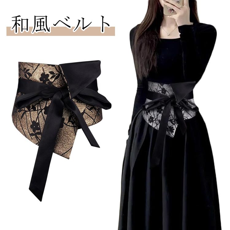 着物 和風 ドレス 飾り サッシュベルト 太め レディース ワンピース ウエストベルト 黒 ウエストマーク ベルト