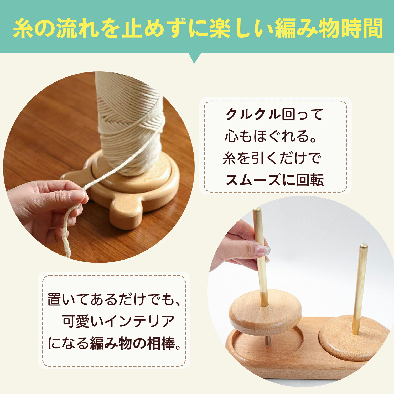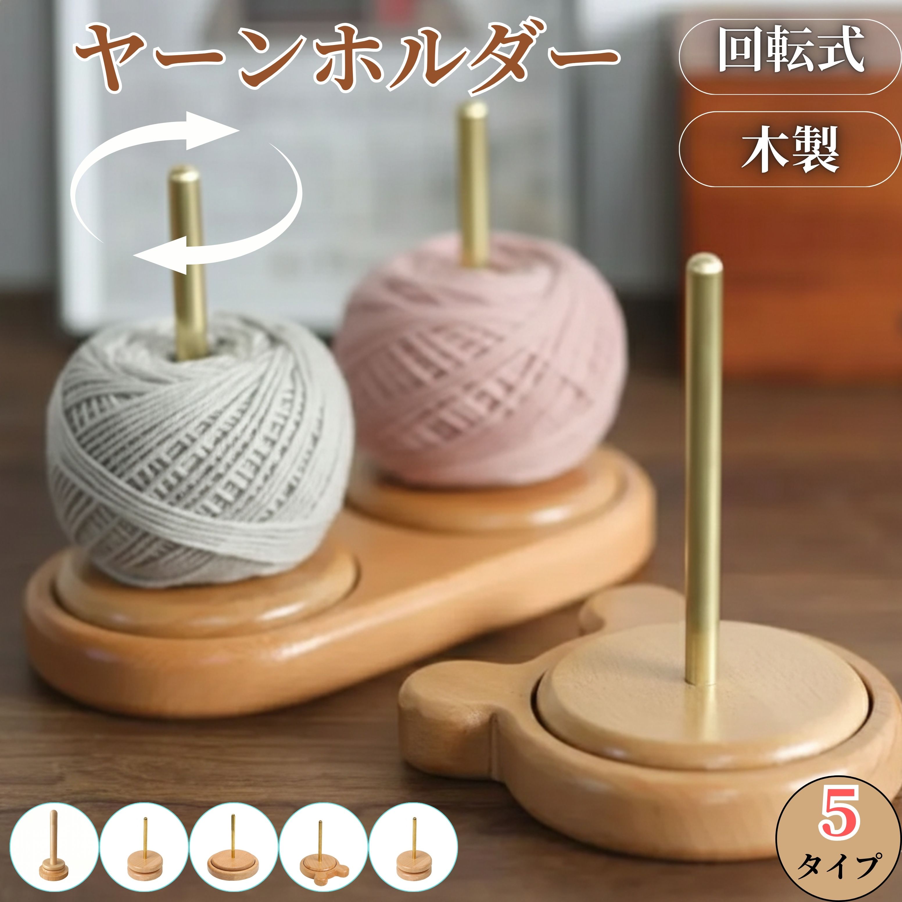 回転式 天然木 ヤーンホルダー