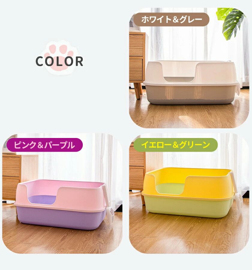 猫トイレ 大きめ 飛び散らない トイレ ペット ペットグッズ 続々入荷中 ホワイトグレー イエローグリーン ピンクパープル