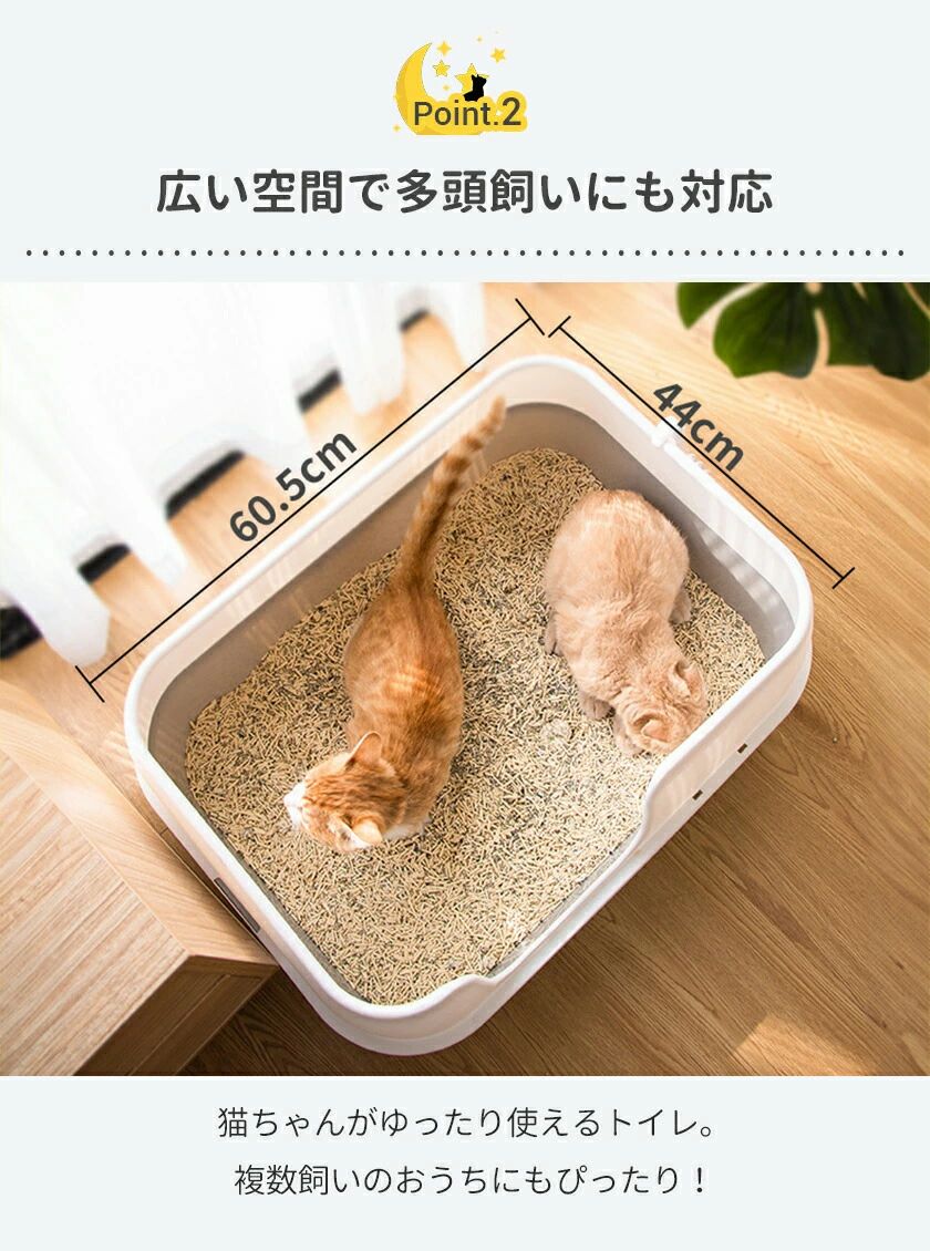 ・多頭飼いにも!広々快適な大型猫トイレ・