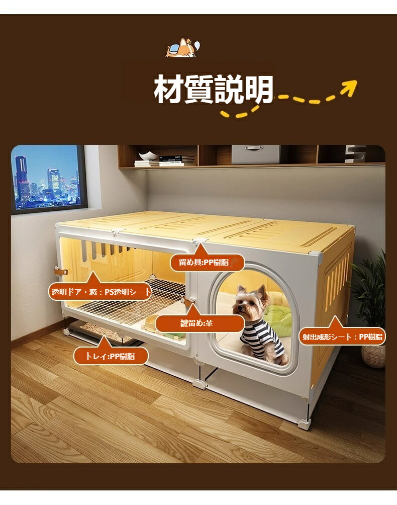 ペット 犬小屋 犬用クレート 小型犬 ペット ペットグッズ 大人気! イエロー グレー 70*45*45 105*45*45 140*45*45