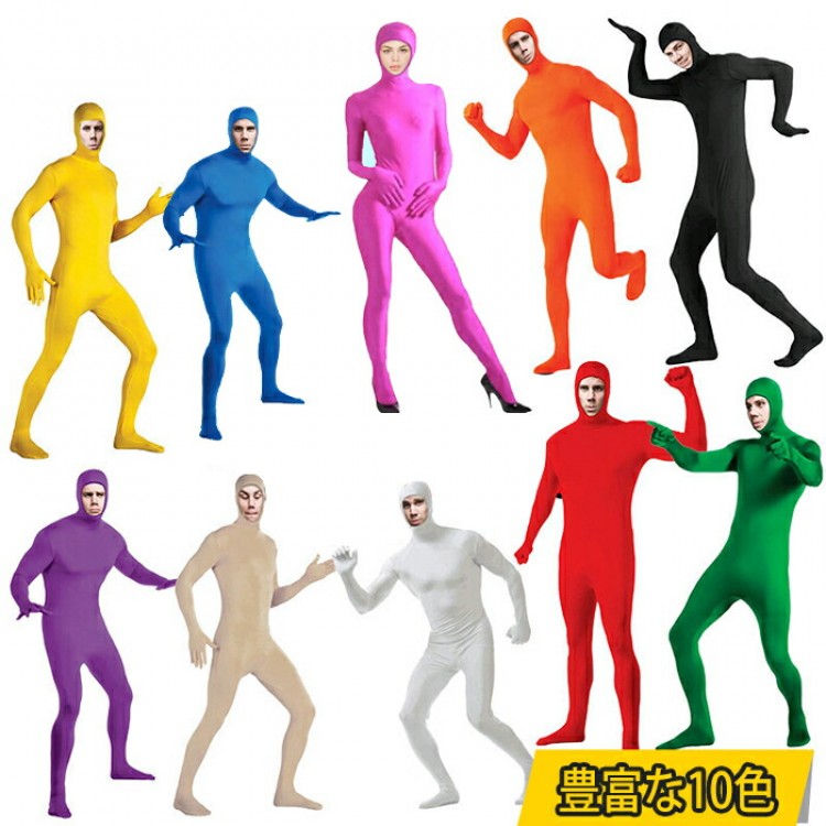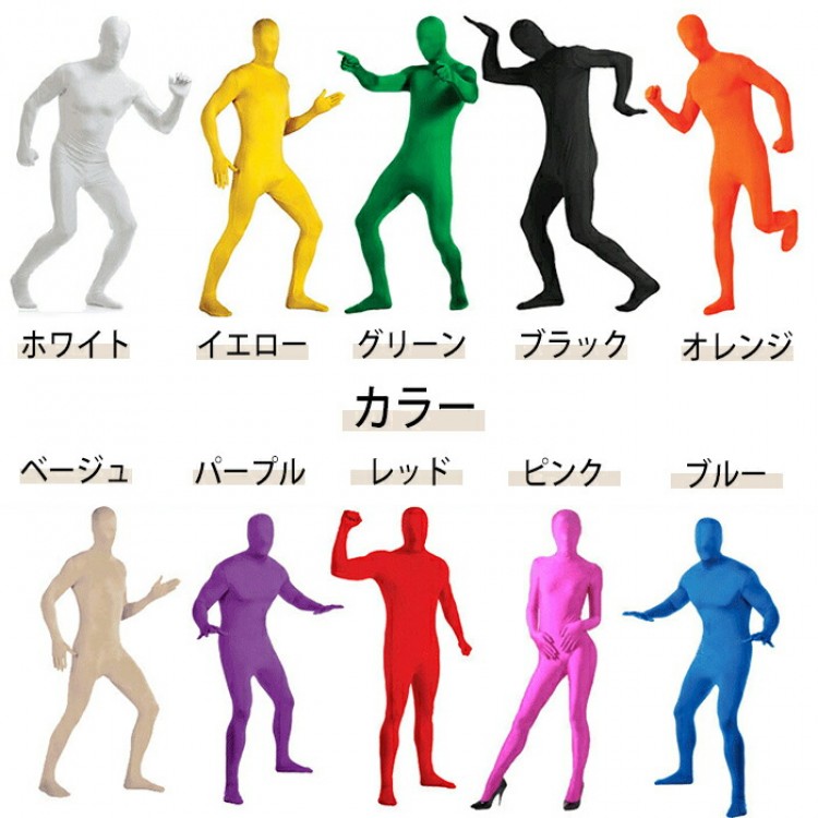 全身タイツ コスプレ 豊富な10色 レ コスプレ 変装 仮装 全身タイツ 早い者勝ち ホワイト イエロー レッド パープル グリーン ブラック オレンジ ピンク ブルー ベージュ M L XL XXL